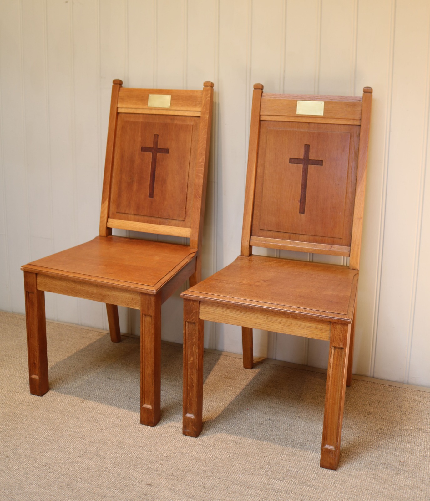 Pair of Solid Oak Church Chairs (1 of 8)