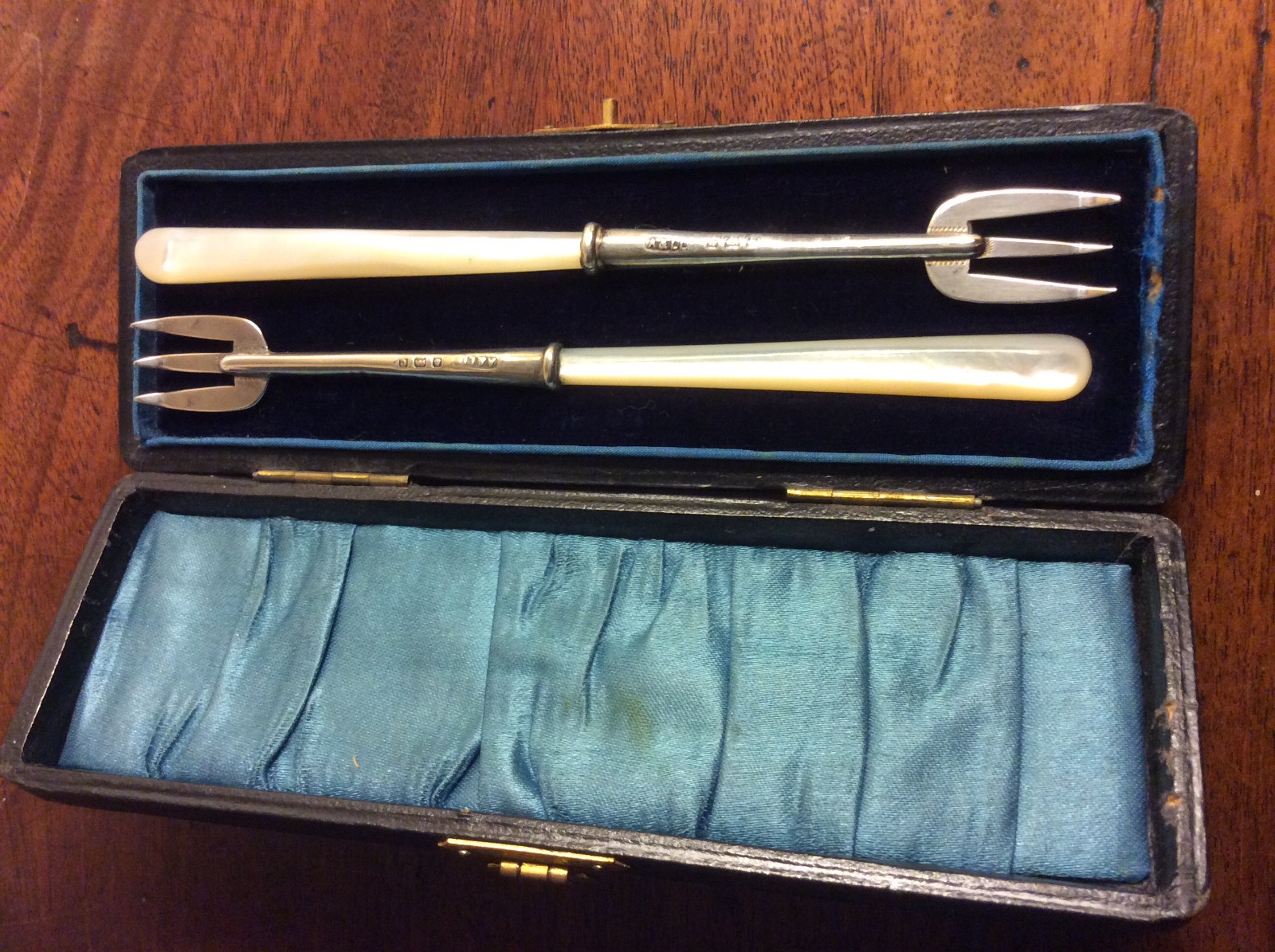 Pair of Solid Silver Shellfish / Pickle Forks