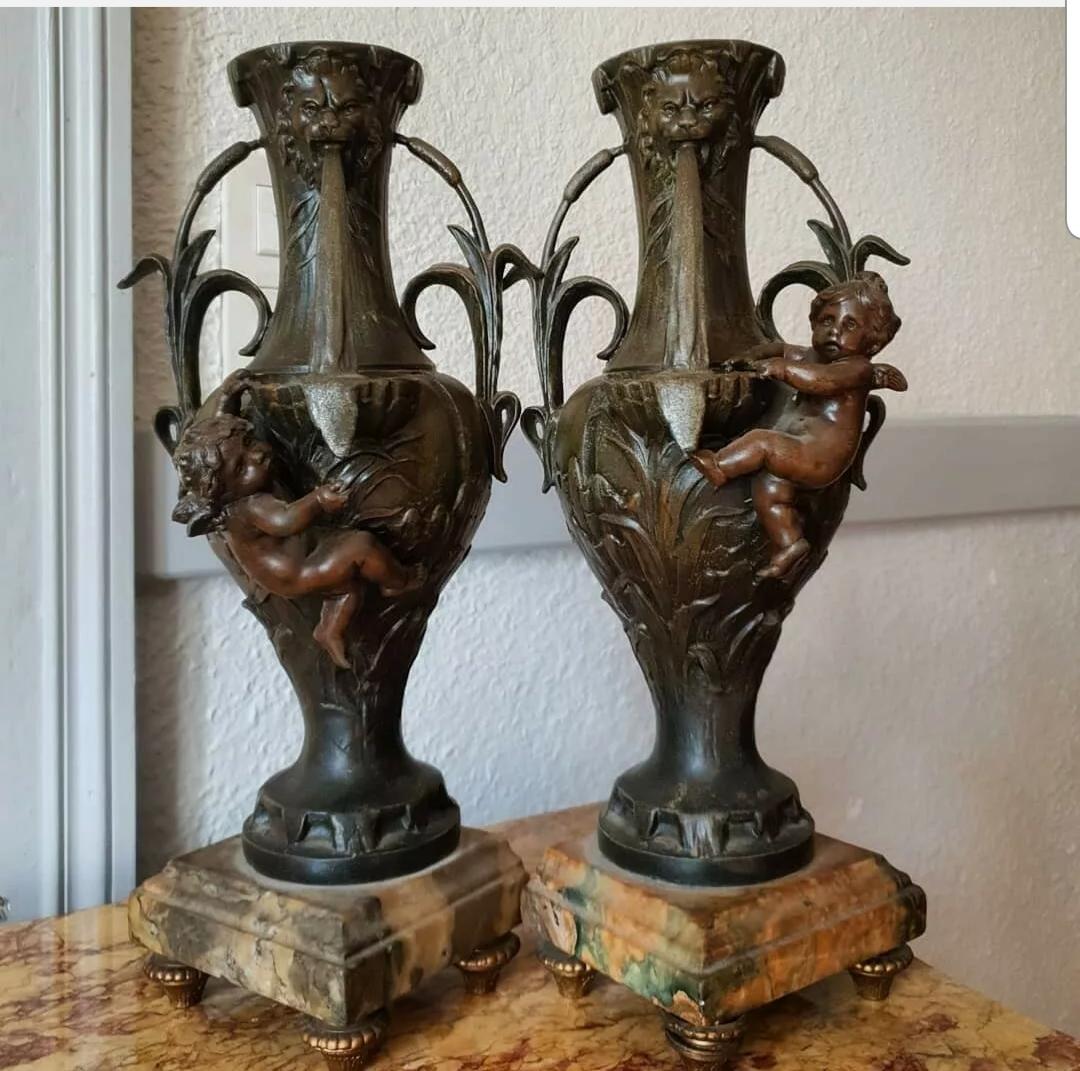 Pair of Spelter Chimney Vases