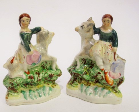 Pair of Staffodshire Flatback Figurines Girls / Princesses on Goats