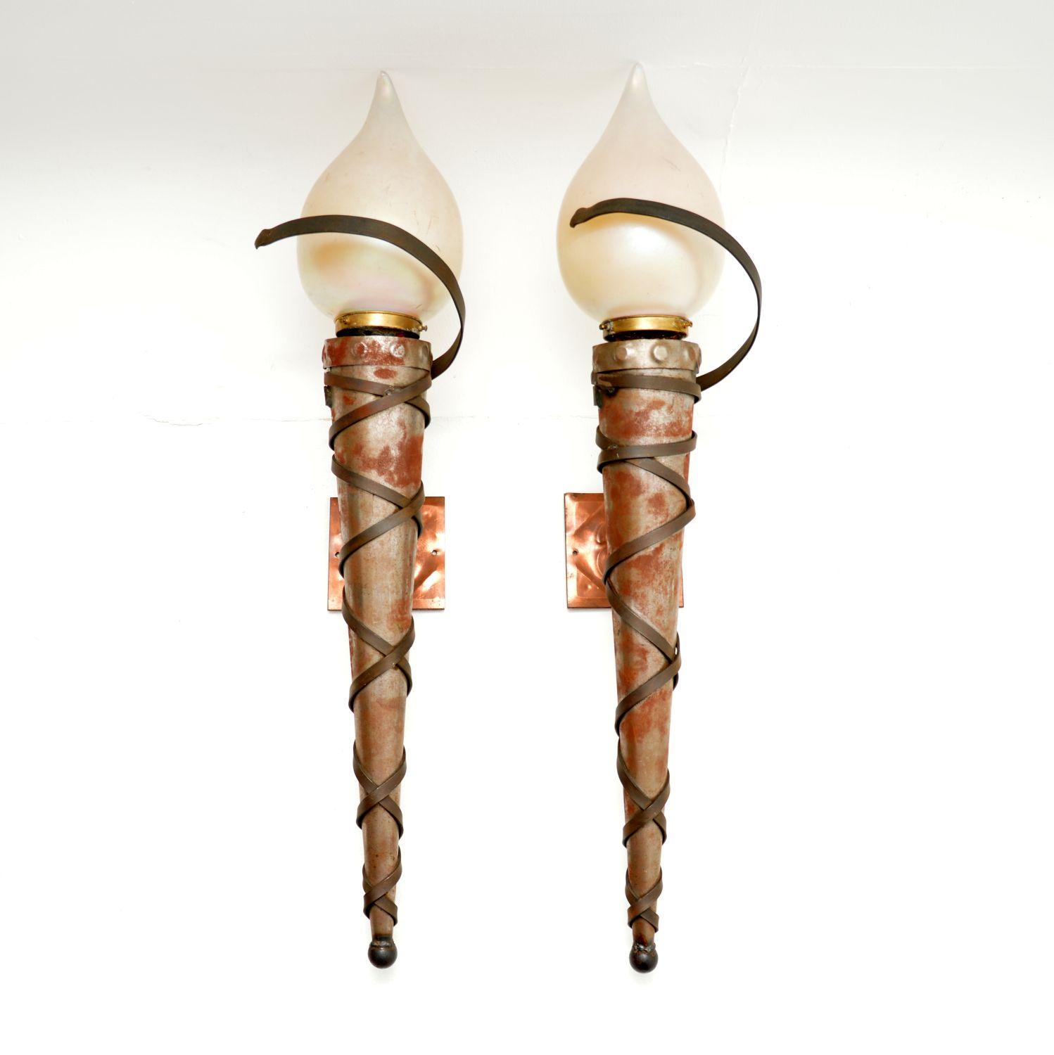 Pair of Steel, Copper & Glass Wall Sconce Lamps (1 of 7)