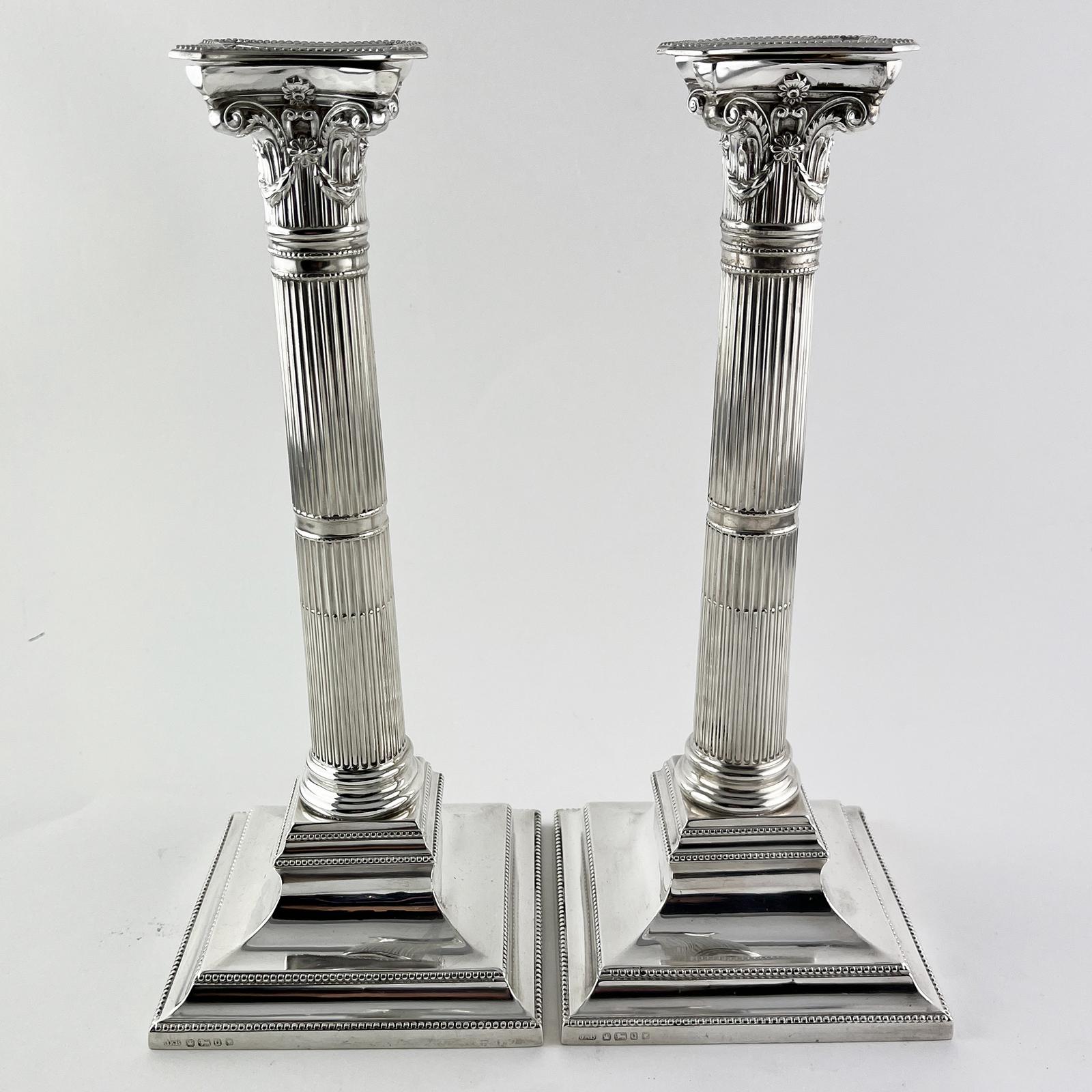 Pair of Sterling Silver Corinthian Style Candlesticks