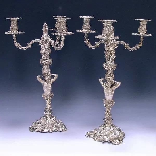 Pair of Sterling Silver Three Light Candelabra Made in 1979