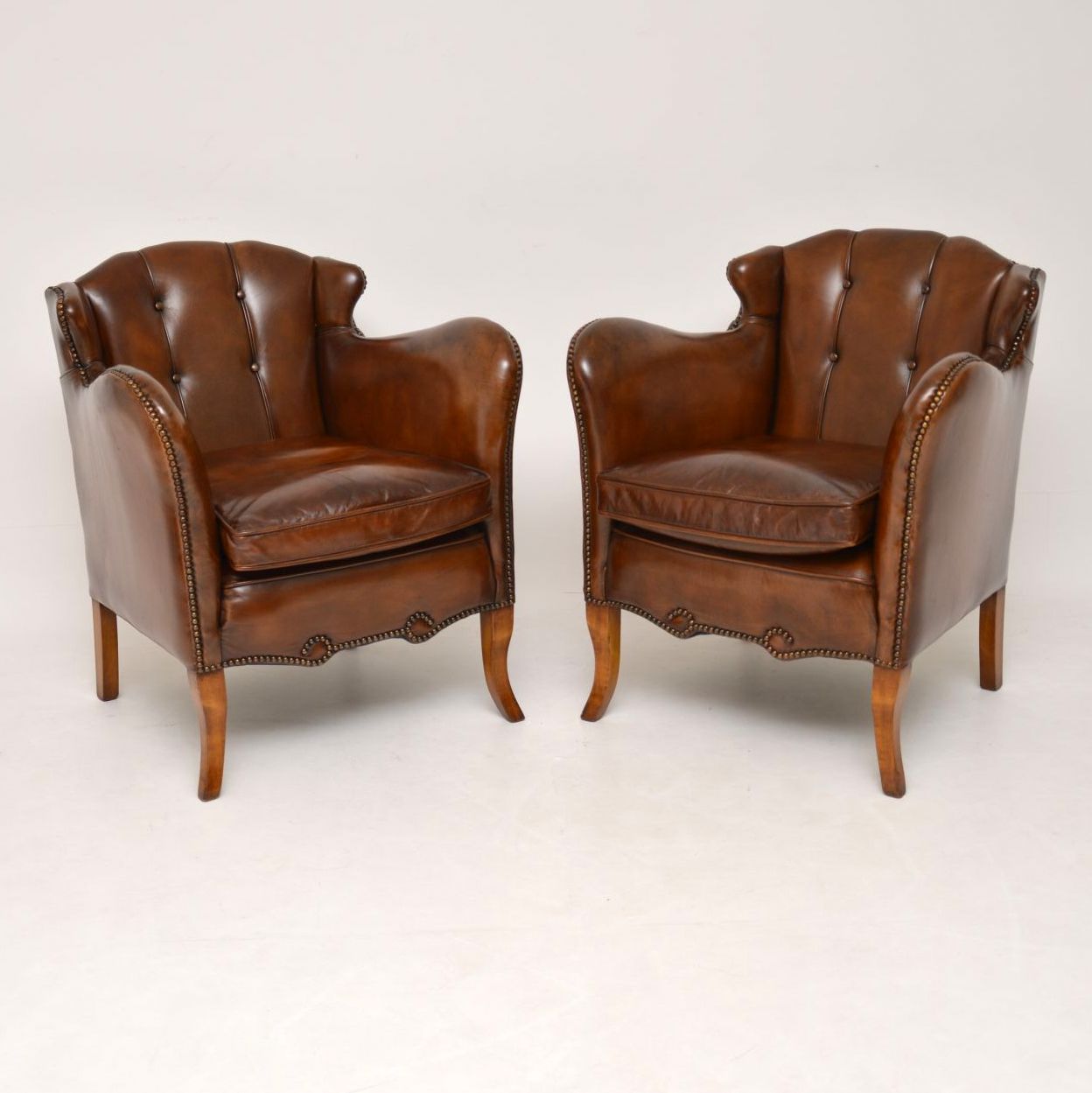 Pair of Stylish Antique Swedish Leather Armchairs (1 of 1)