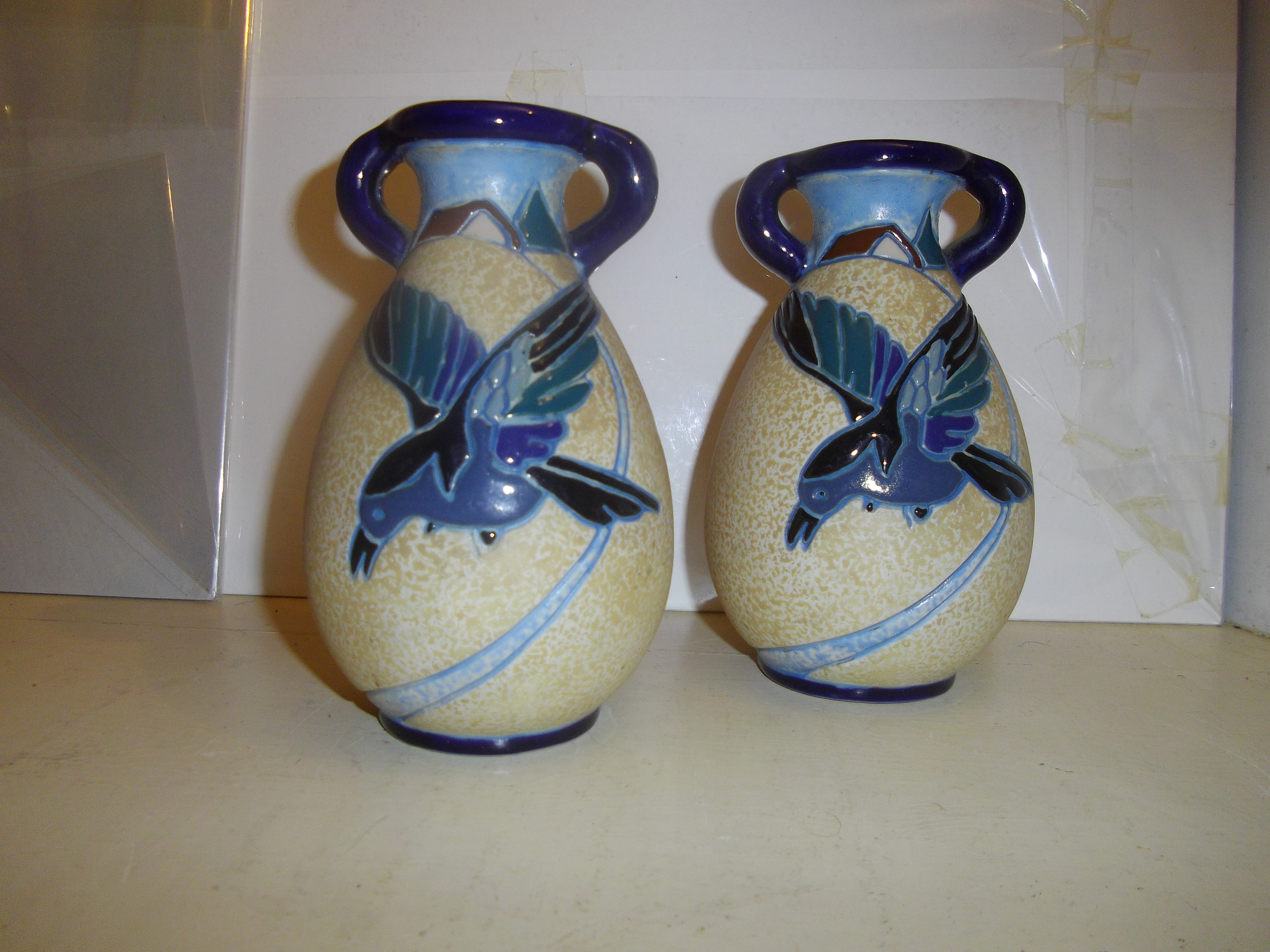 Pair of Stylish Art Deco Amphora Pottery Czechoslovakia Vases c.1930s