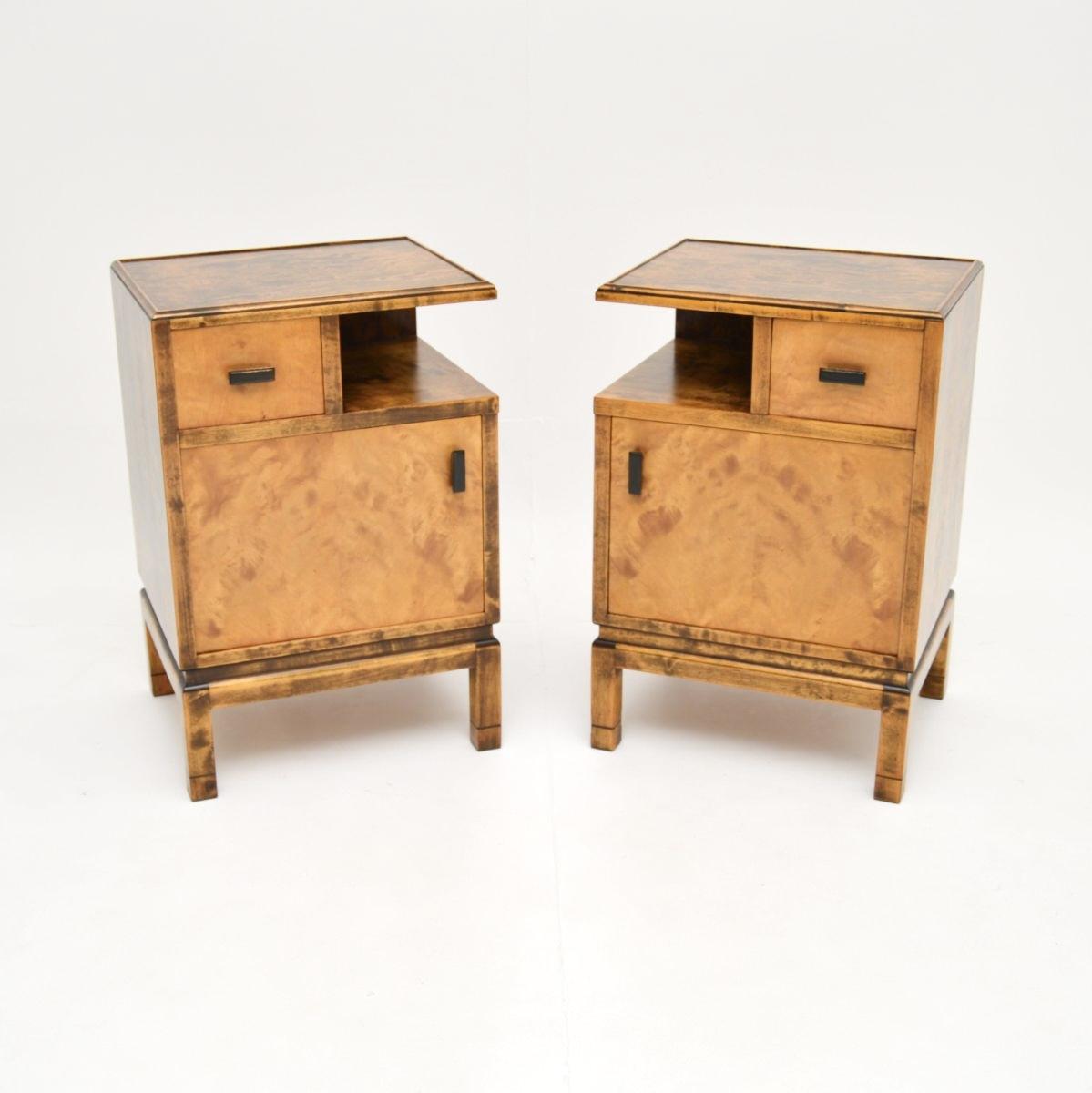 Pair of Swedish Art Deco Bedside Cabinets in Satin Birch