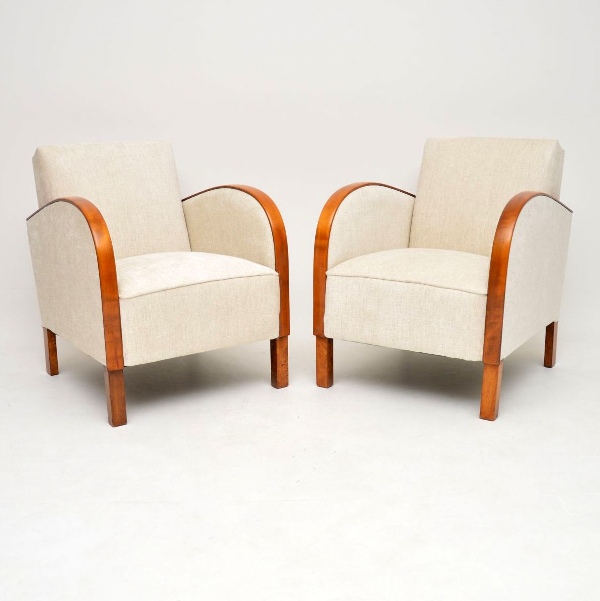 Pair of Swedish Art Deco Satin Birch Armchairs
