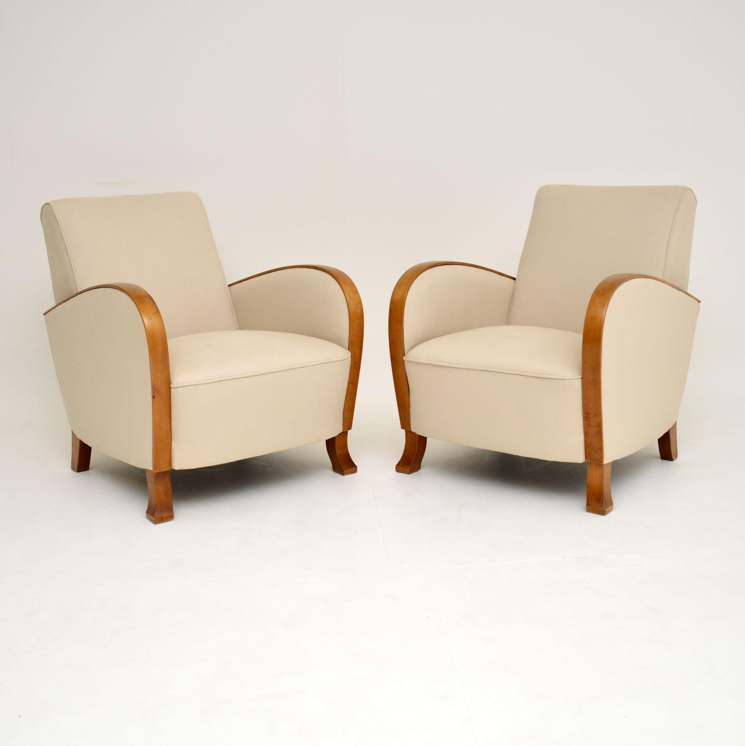 Pair of Swedish Art Deco Satin Birch Armchairs
