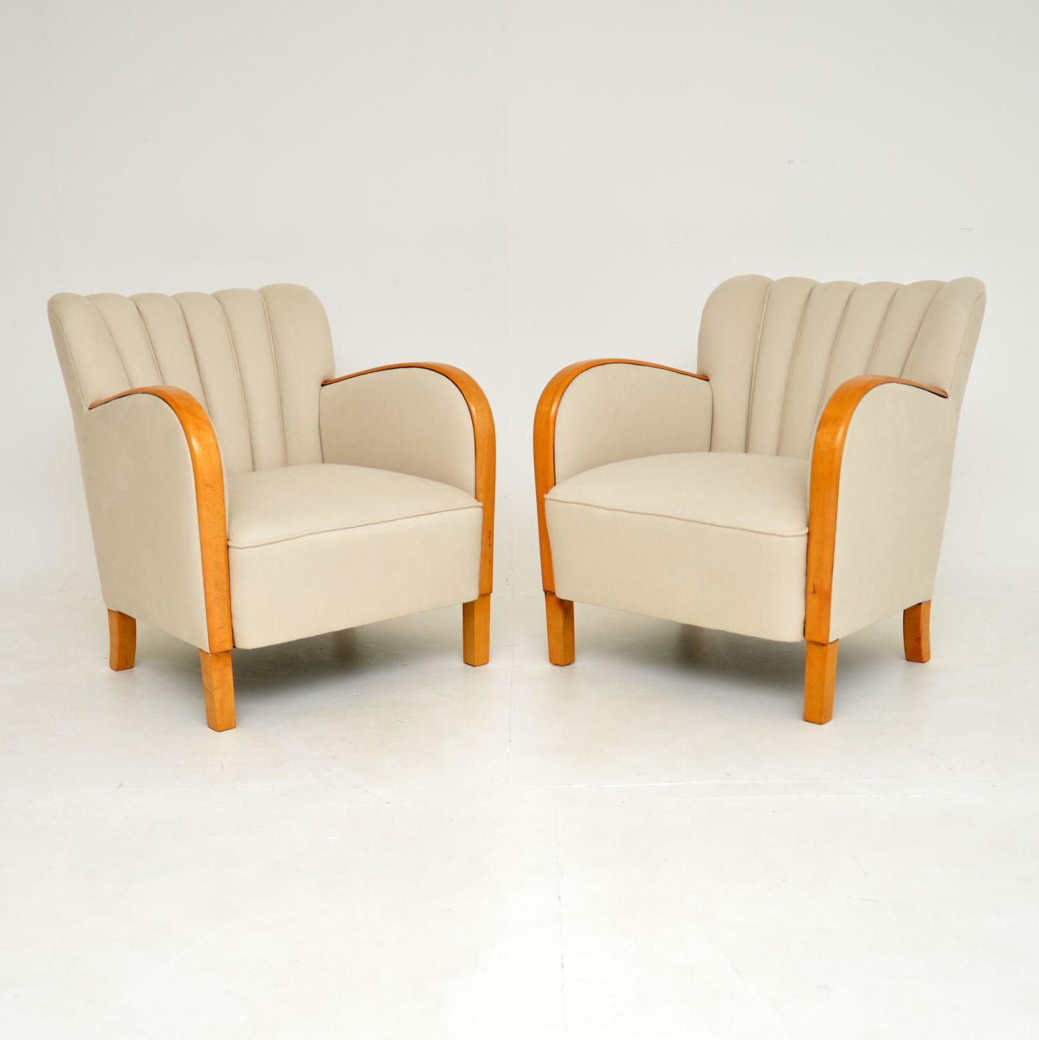 Pair of Swedish Art Deco Satin Birch Armchairs