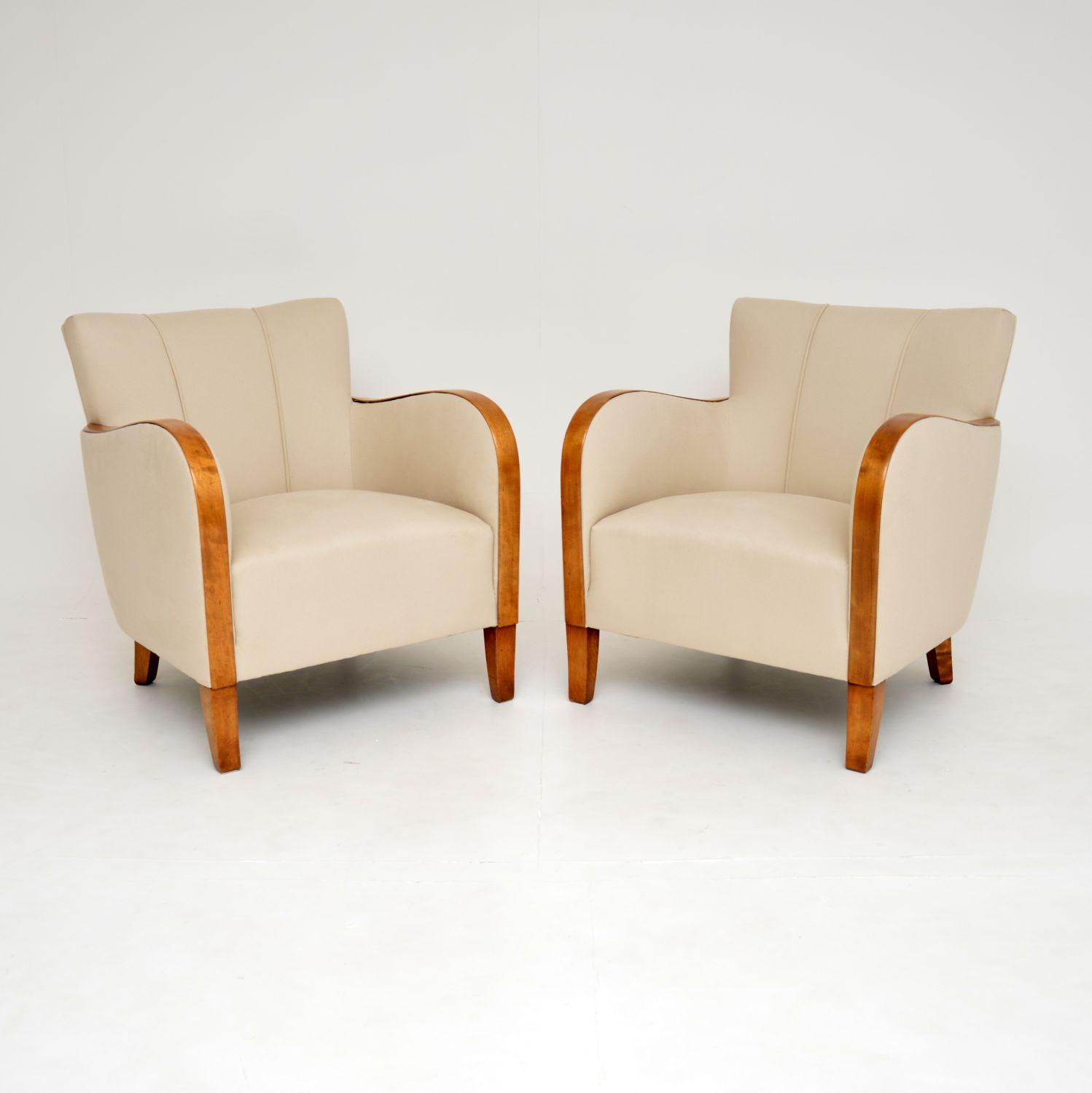 Pair of Swedish Art Deco Satin Birch Armchairs