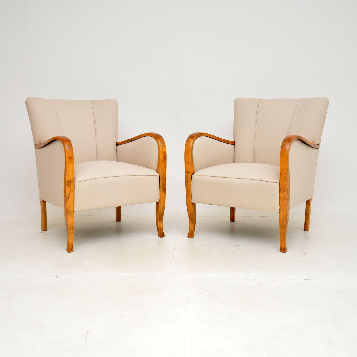 Pair of Swedish Art Deco Satin Birch Armchairs