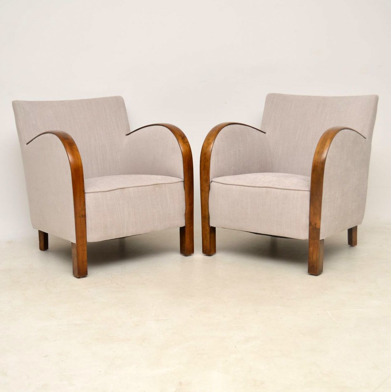 Pair of Swedish Art Deco Satin Birch Armchairs