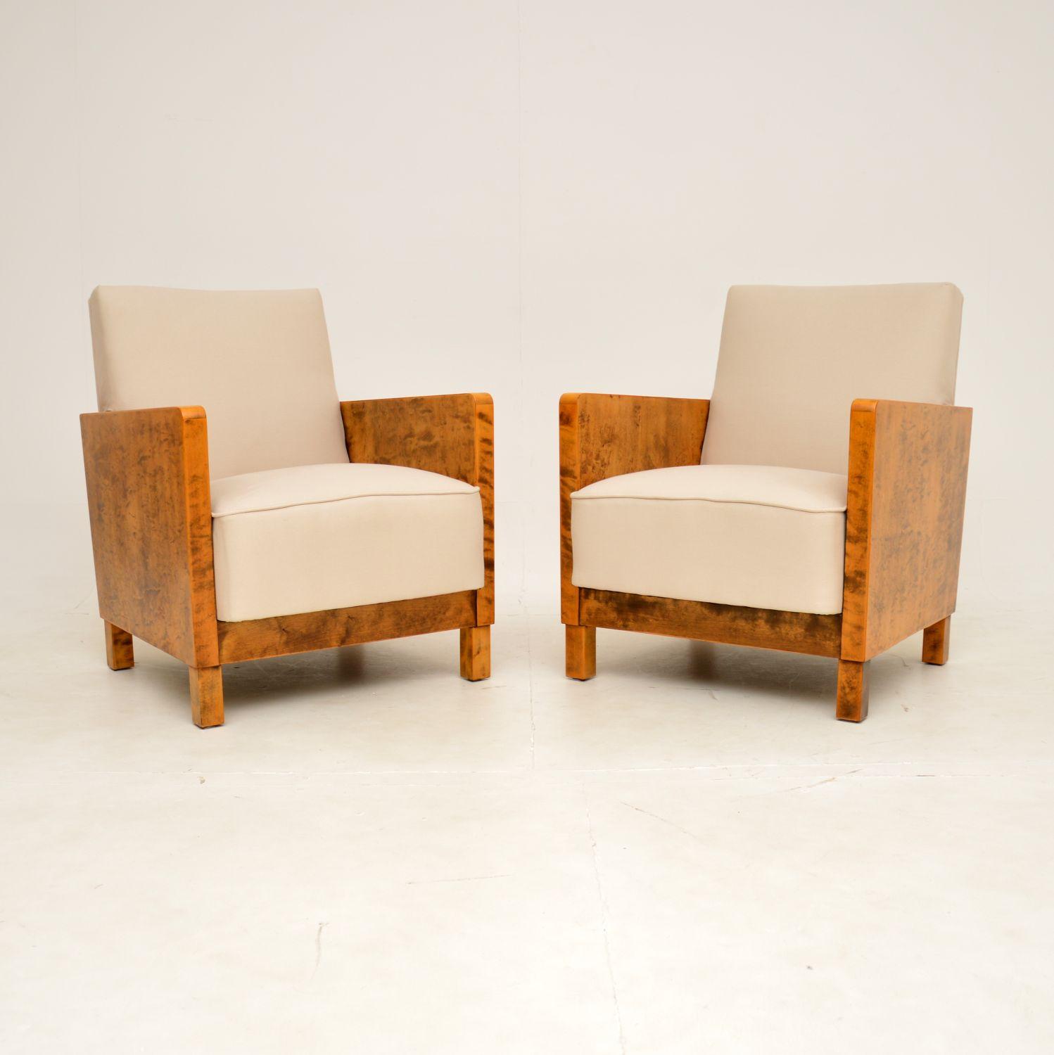 Pair of Swedish Art Deco Satin Birch Armchairs by Axel Larsson