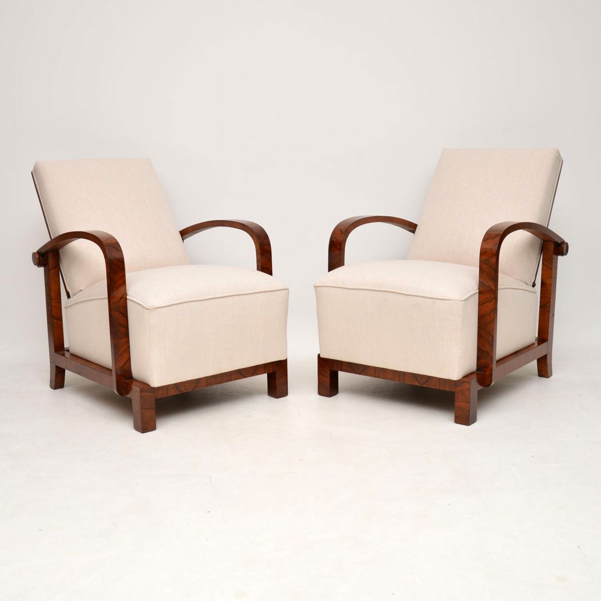 Pair of Swedish Art Deco Walnut Armchairs