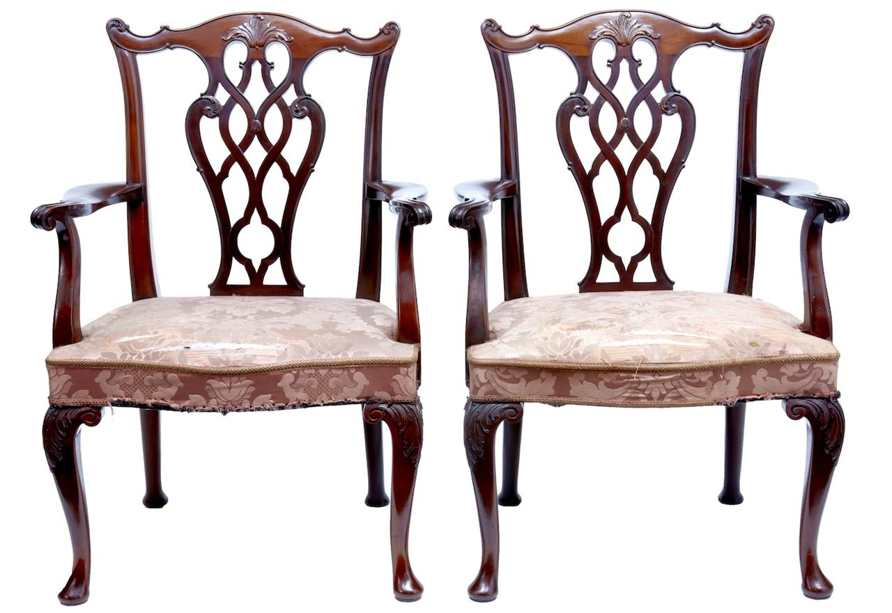 Pair of Swedish Chippendale Influenced Mahogany Armchairs c.1923 (1 of 1)