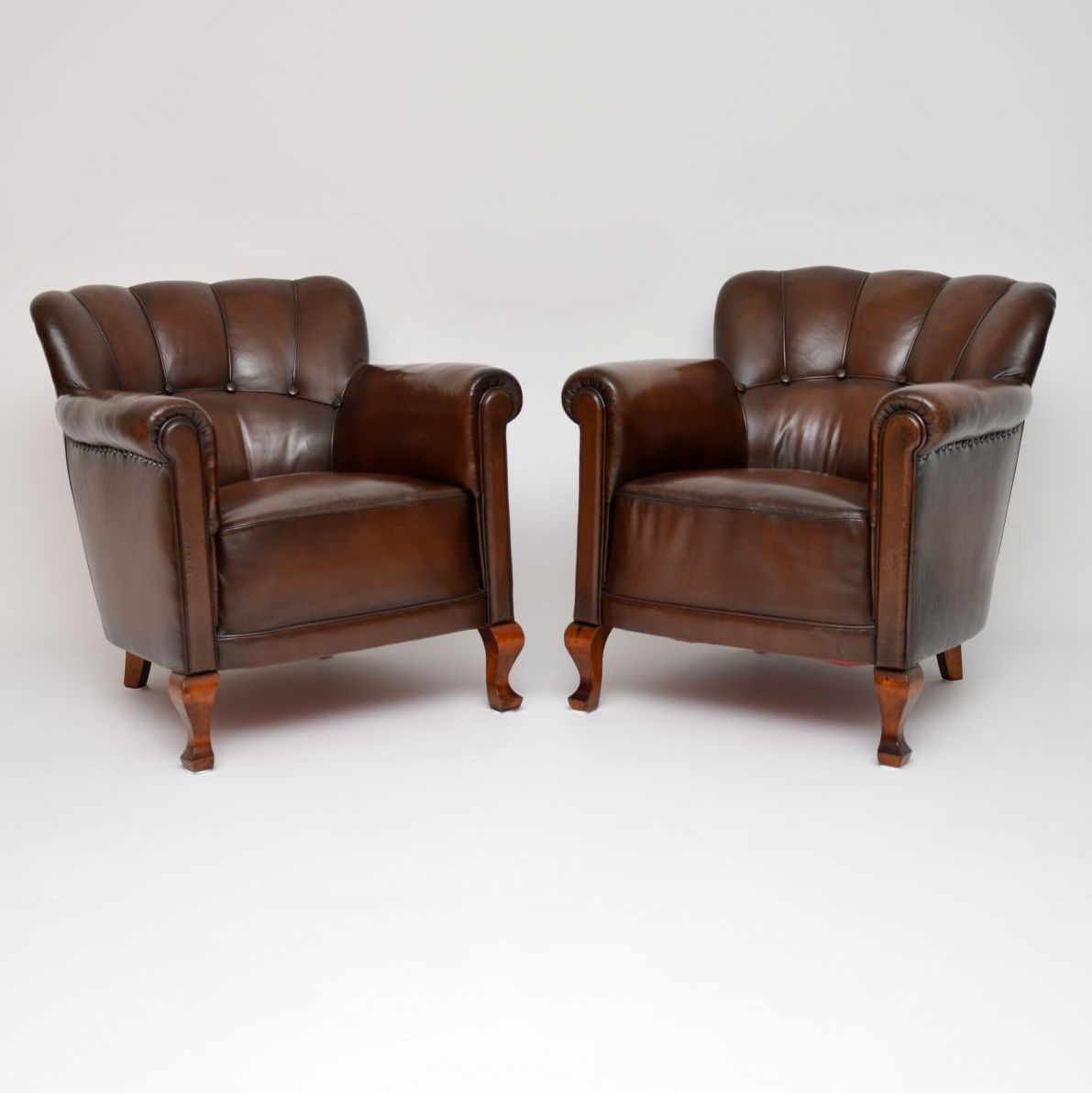Pair of Swedish Leather Armchairs c.1920 (1 of 1)