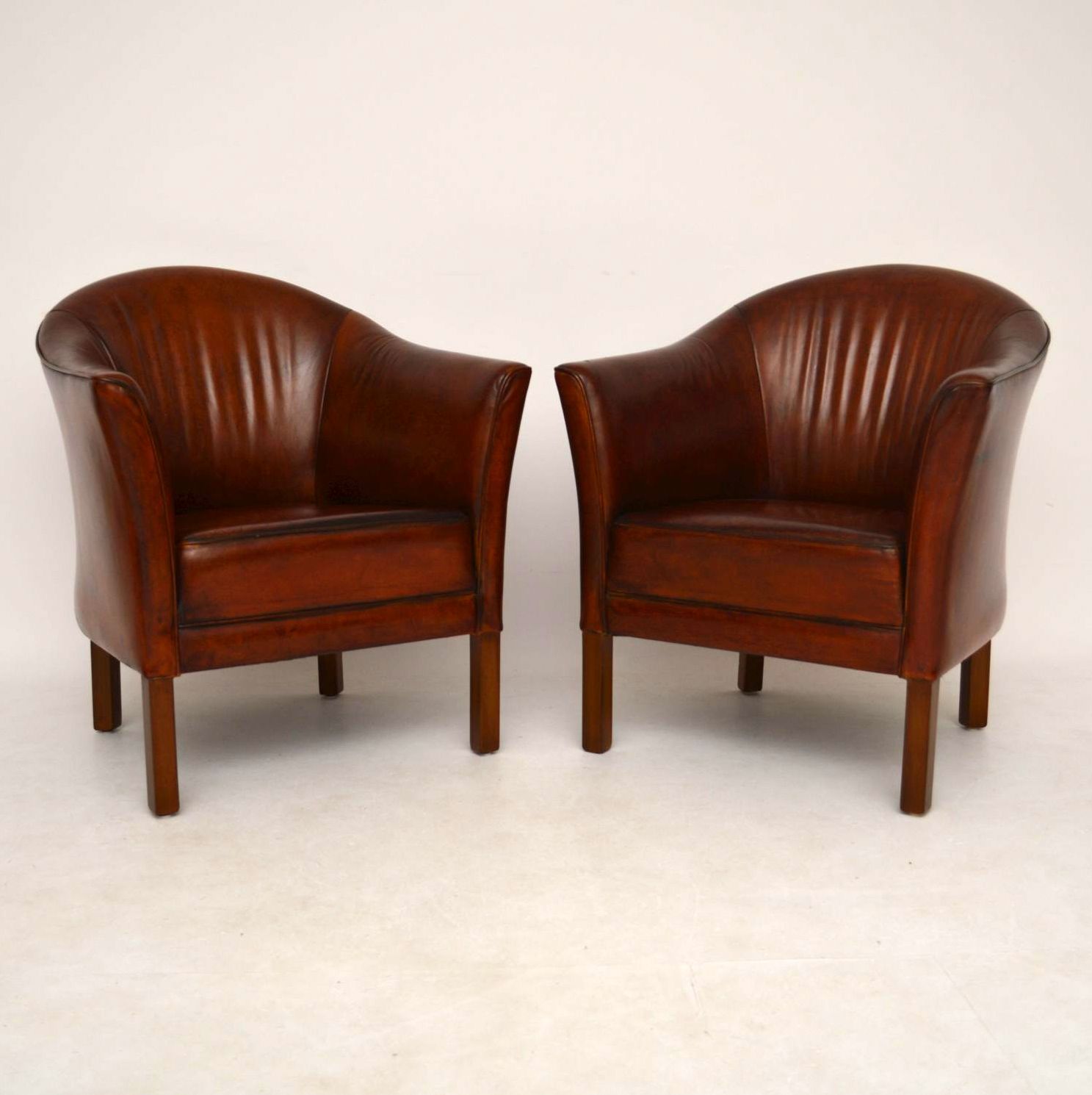 Pair of Swedish Leather Tub Armchairs (1 of 1)