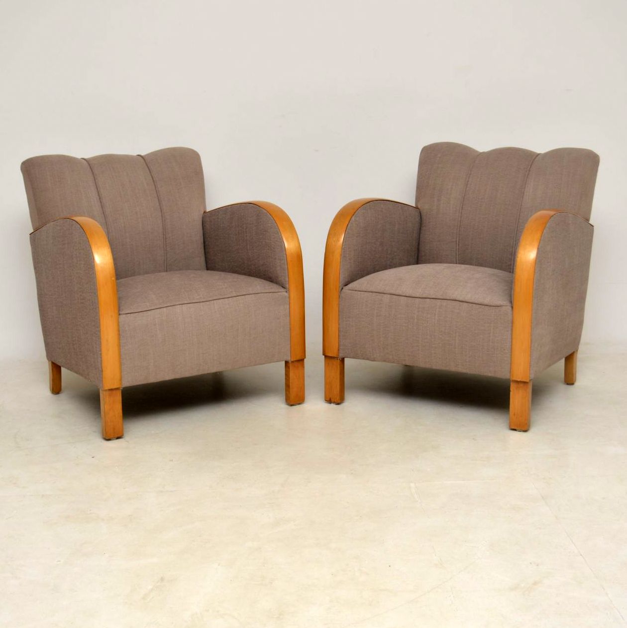 Pair of Swedish Satin Birch Art Deco Armchairs