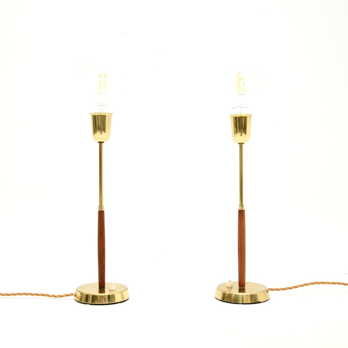 Pair of Swedish Vintage Teak and Brass Table Lamps
