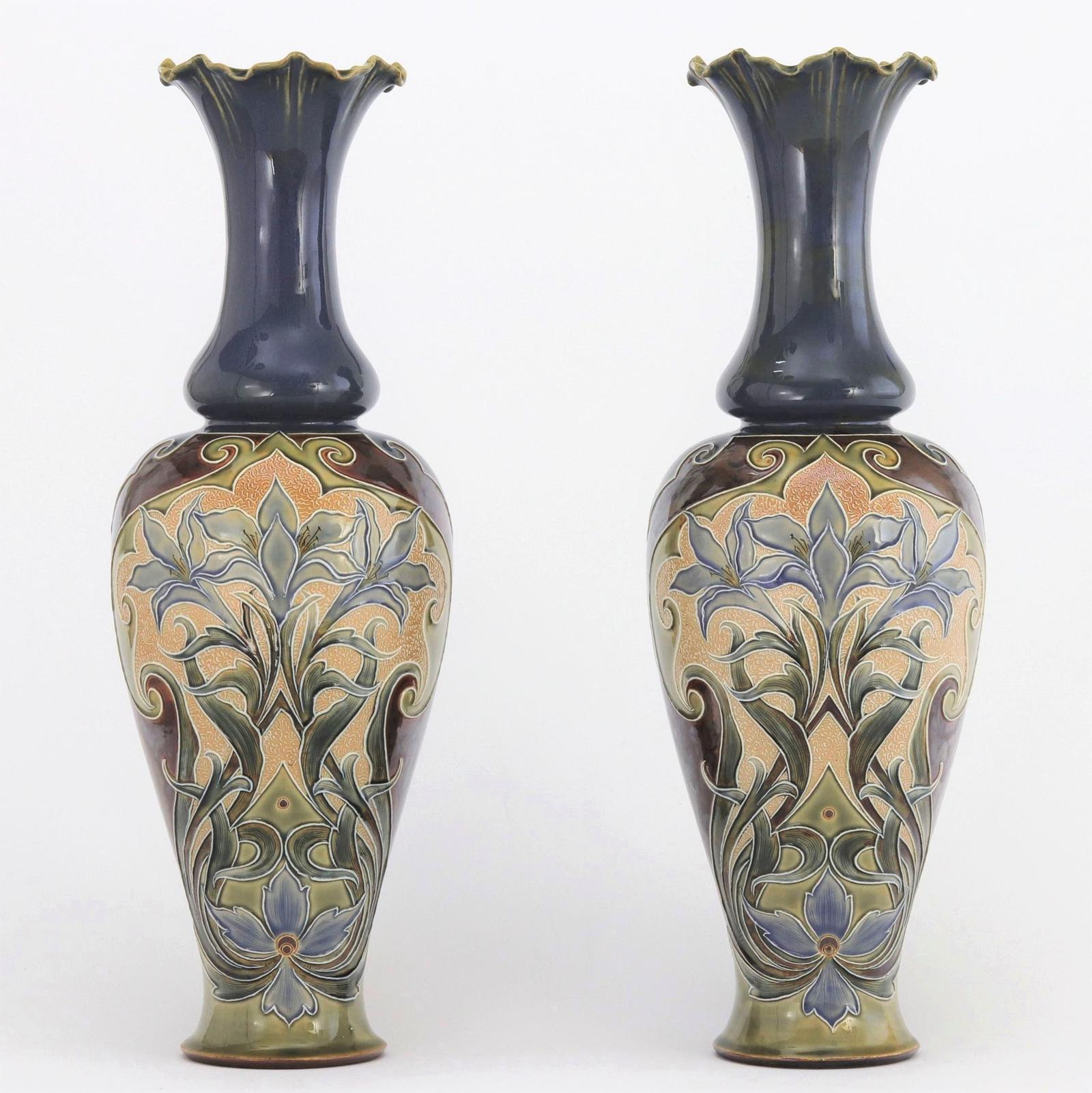 Pair of Tall Doulton Lambeth Art Nouveau Baluster Vases by Eliza Simmance c.1895 (1 of 12)