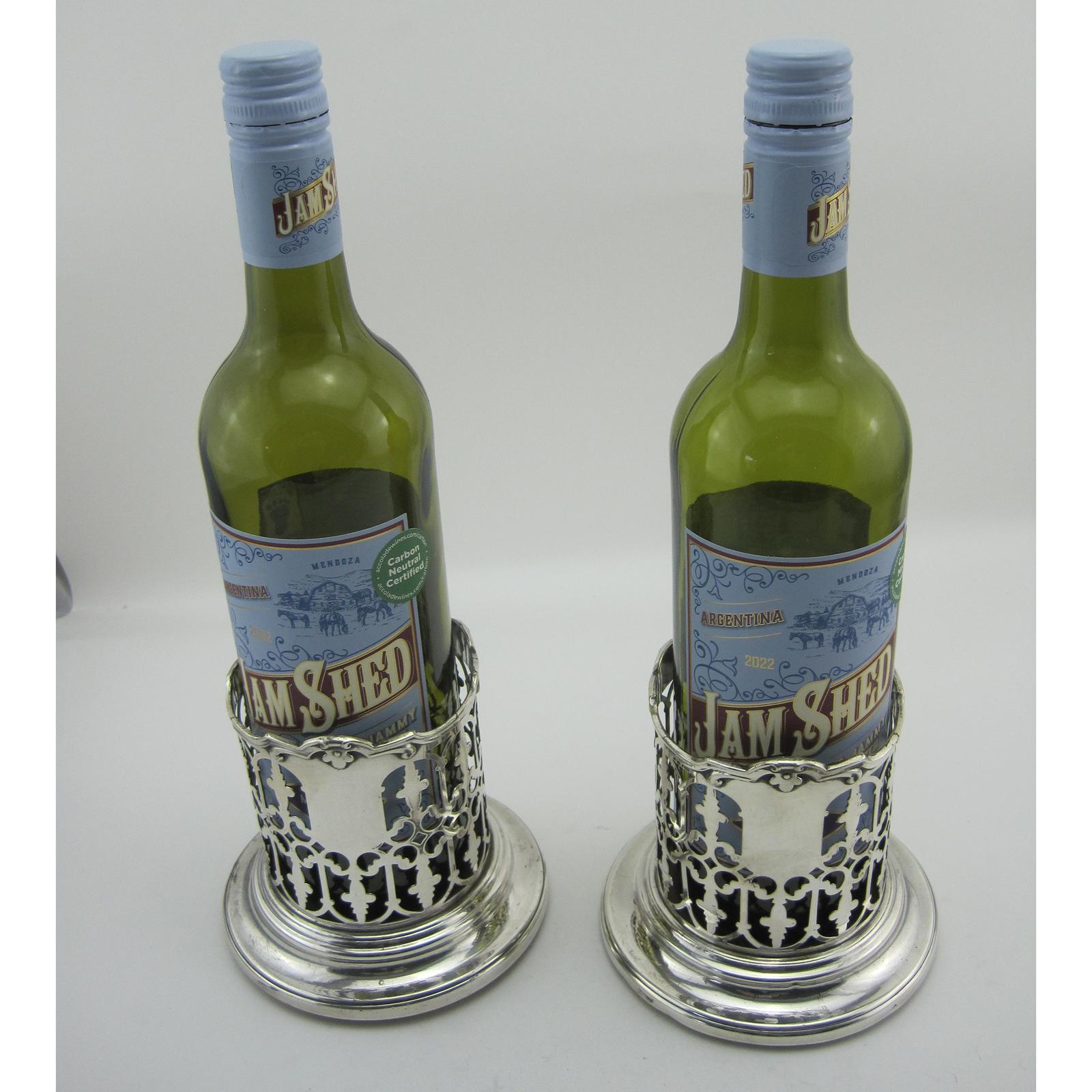 Pair of Tall Pierced Victorian Silver Plated Bottle Holders or Coasters