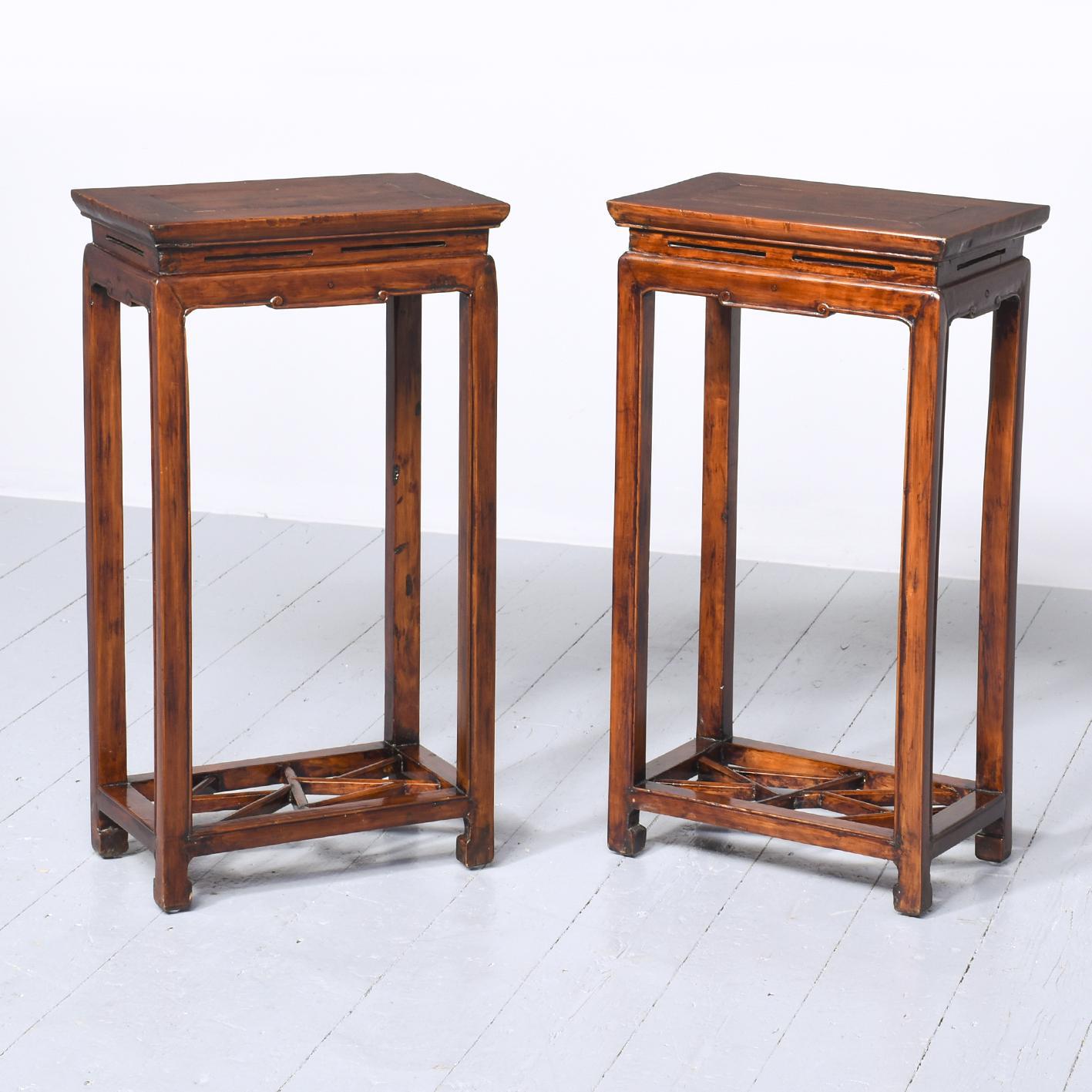 Pair of Tall Qing Dynasty Chinese-stained Soft Wood Side Tables