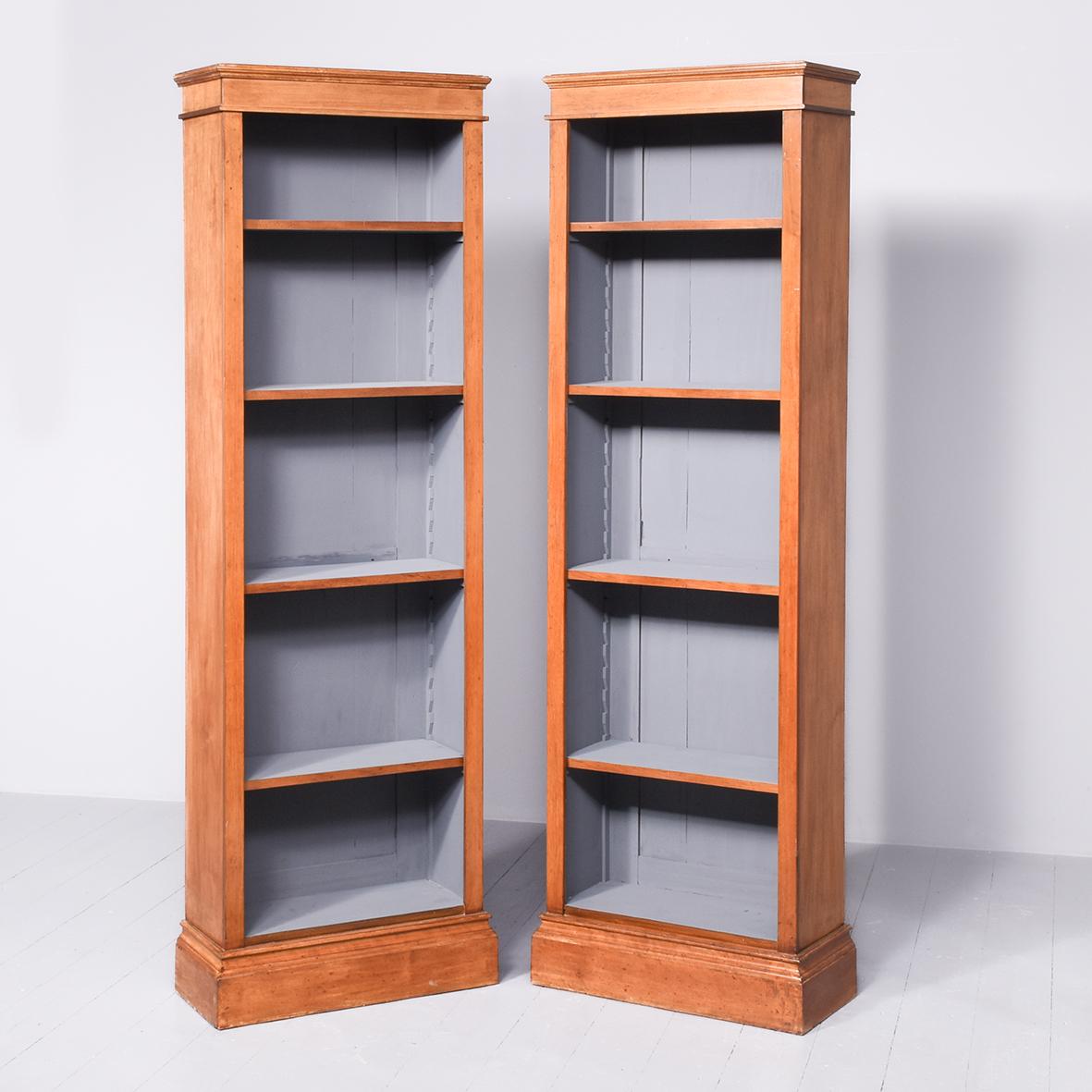 Pair of Tall Slim Victorian Mahogany Open Bookcases