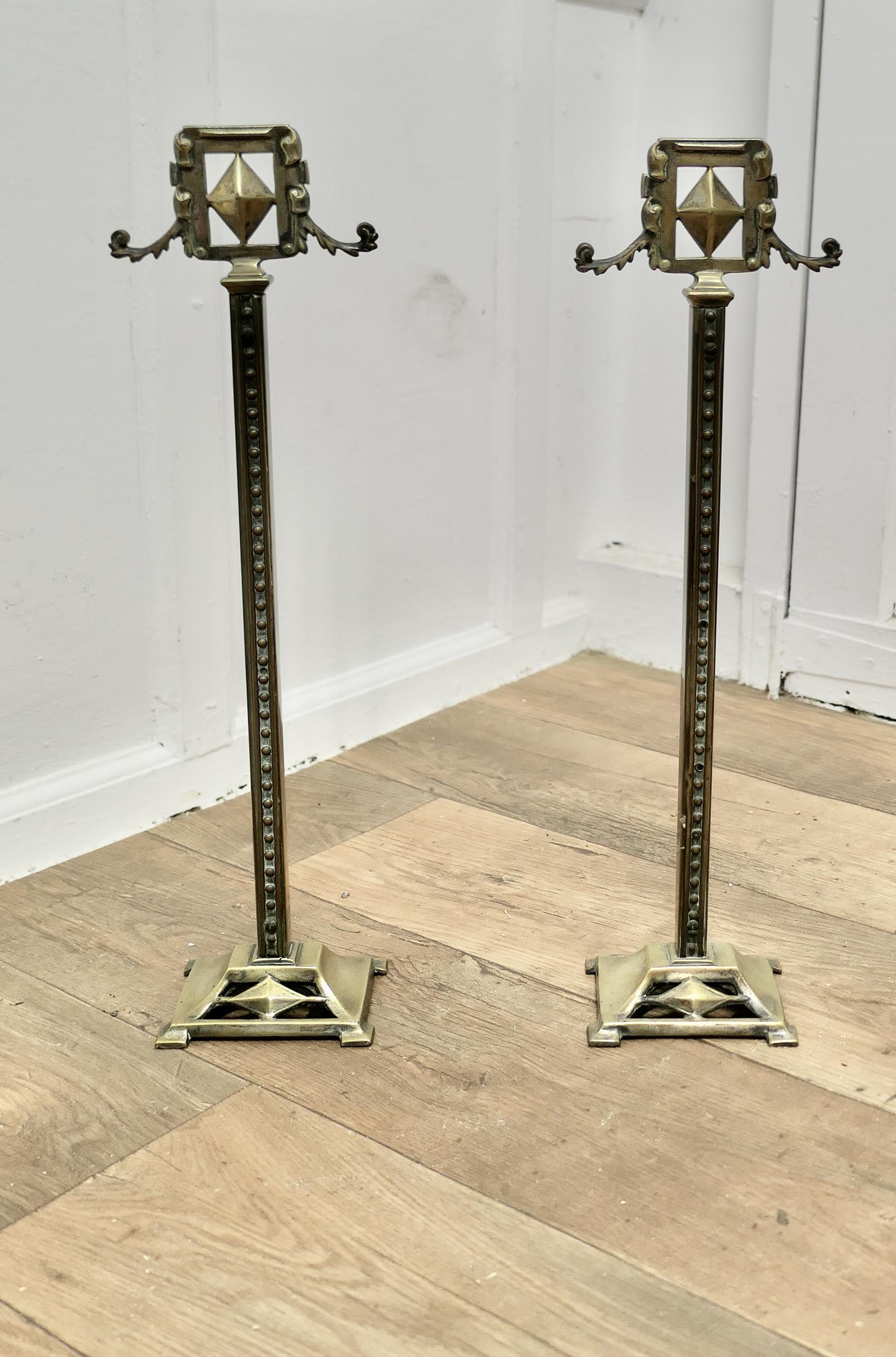Pair of Tall Victorian Brass Andirons or Tool Rests