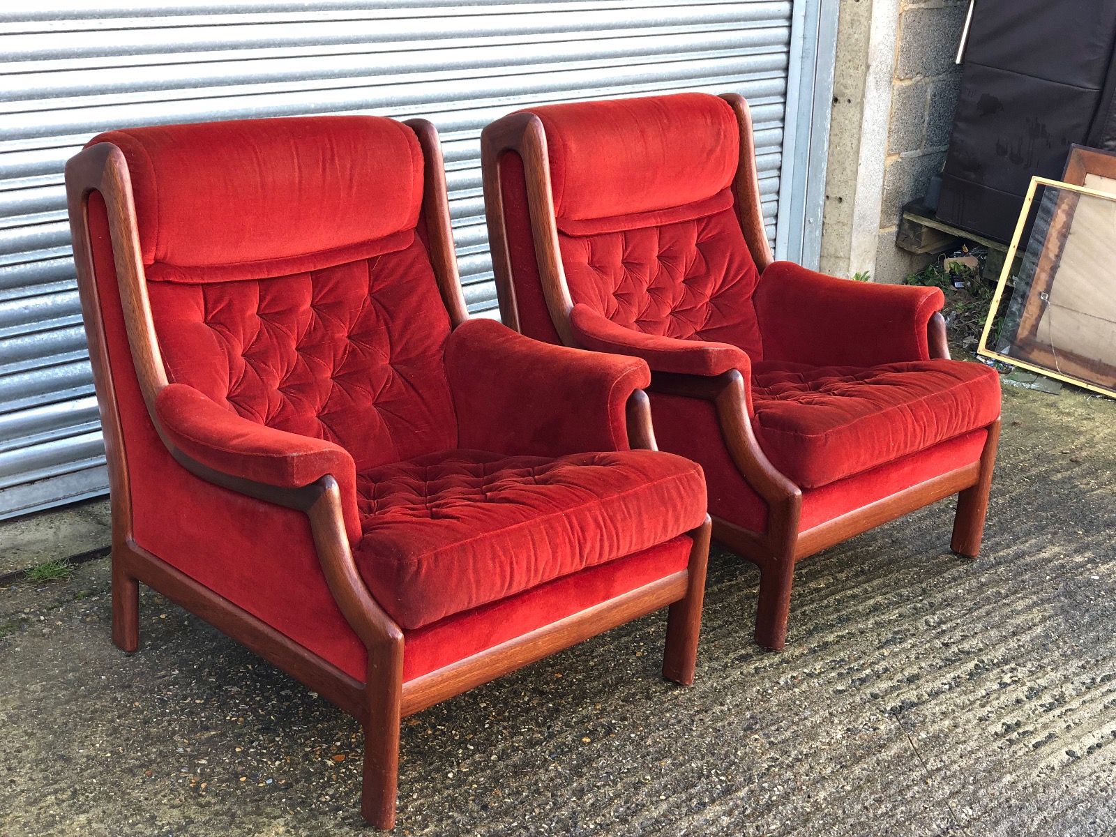 Pair of Teak Guy Rogers Uk Vintage Retro Armchairs