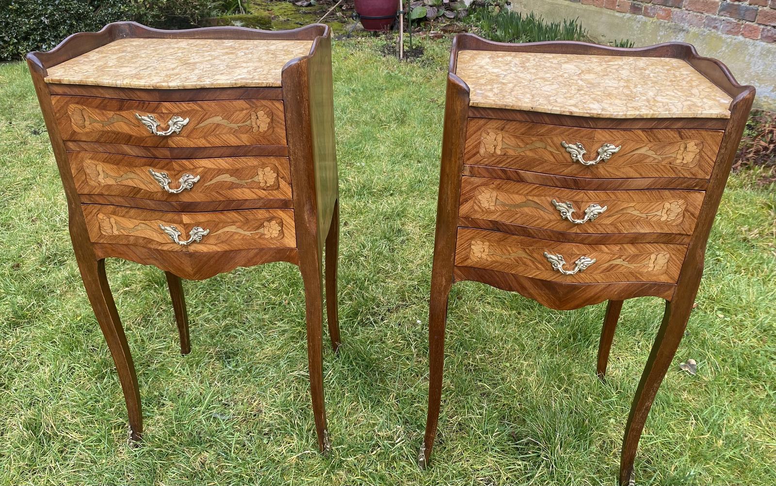 Pair of Three Drawer Marquetry Bedside Tables (1 of 8)