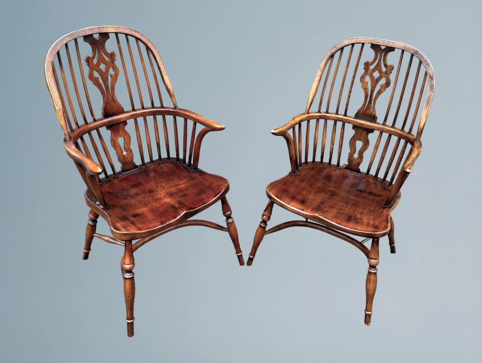 Pair of Titchmarsh Goodwin Oak High Back Windsor Armchairs