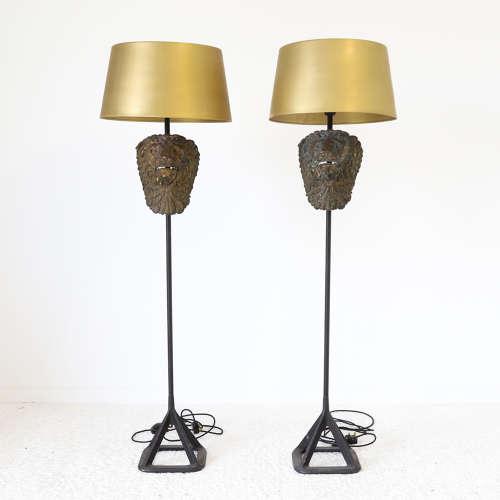 Pair of Tom Dixon Floor Lamps with 18th Century Bronze Lion Heads