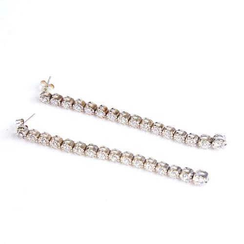 Pair of Unmarked White Gold Graduated Diamond Line Pendant Earrings