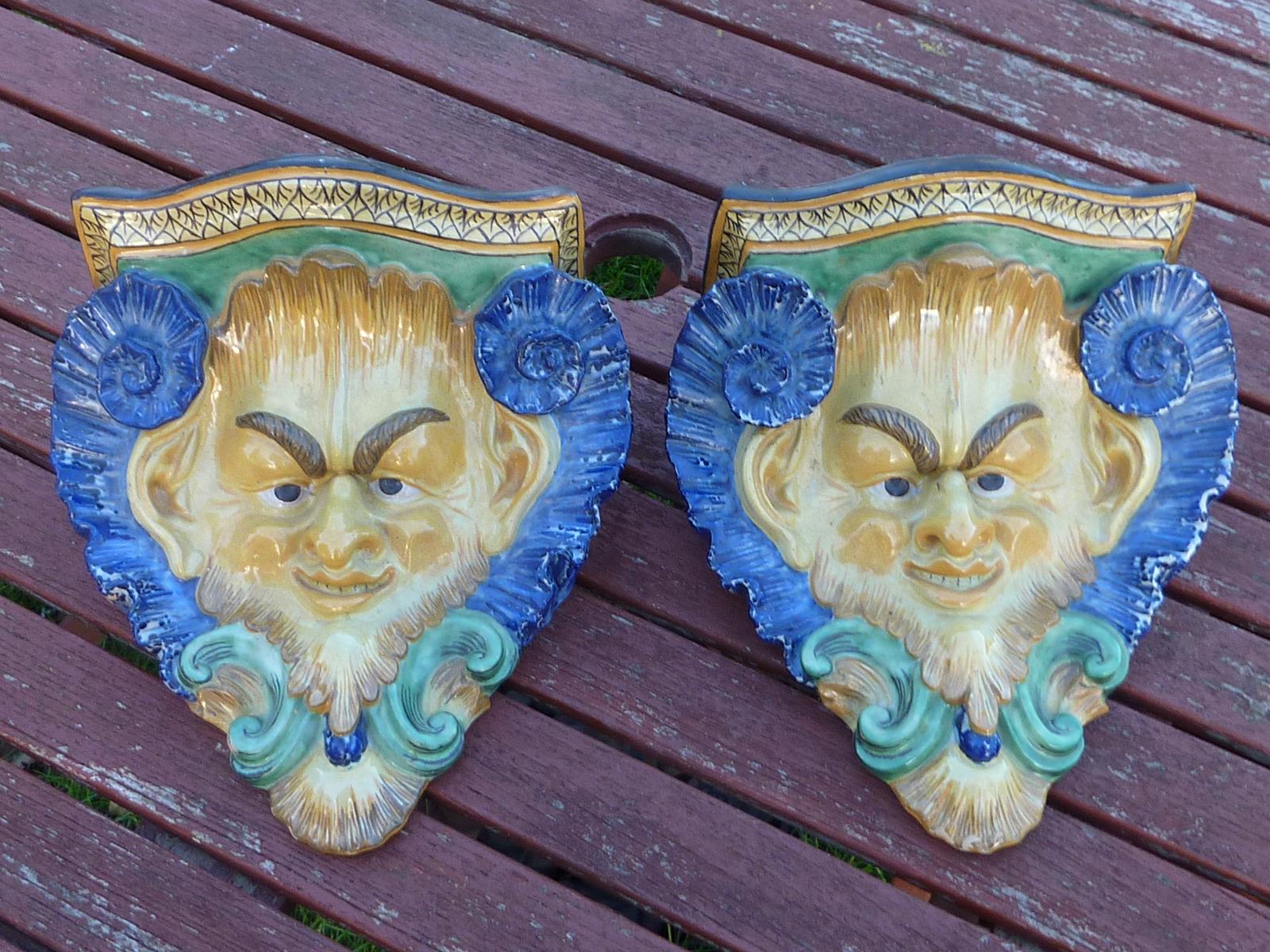 Pair of Unusual 19th Century Majolica Pottery Wall Brackets