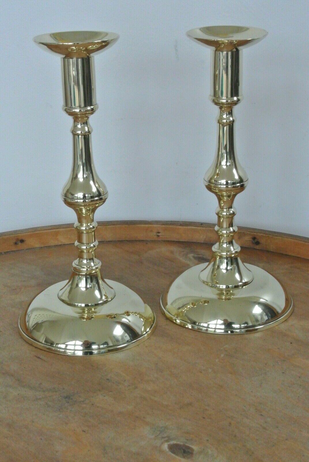 Pair of Unusual 19th Century Victorian Brass Candlesticks Round Base & Pushers