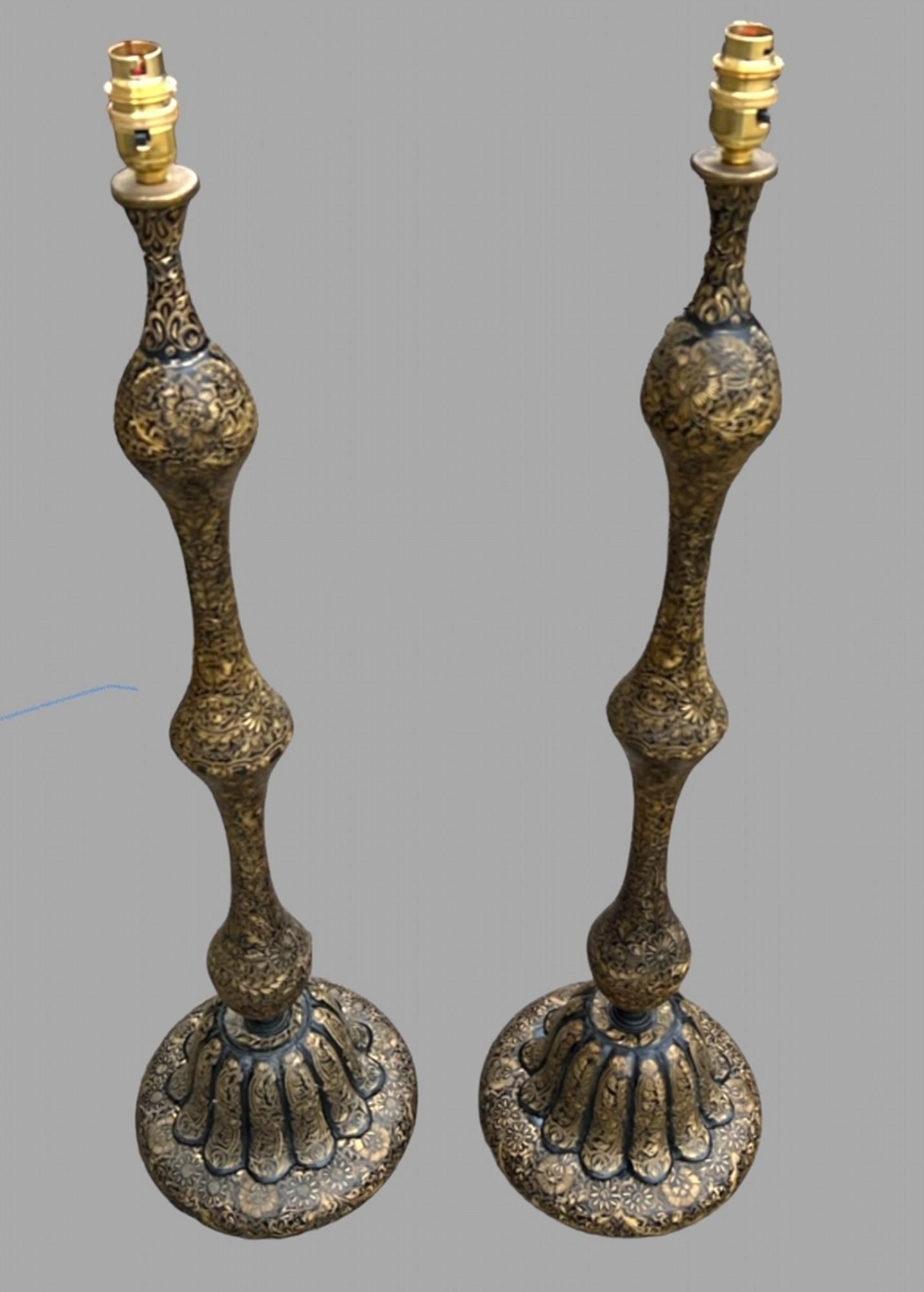 Pair of Unusual & Attractive Brass Painted Lamps