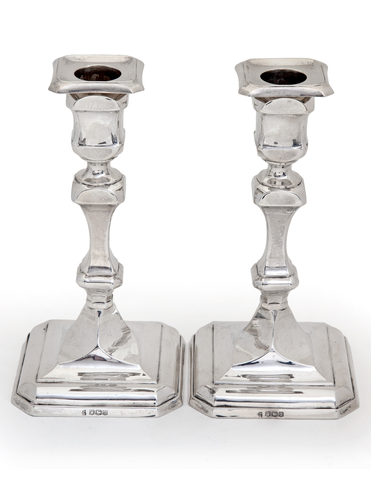 Pair of Unusual Design Silver Thomas Bradbury Candlesticks (1 of 4)