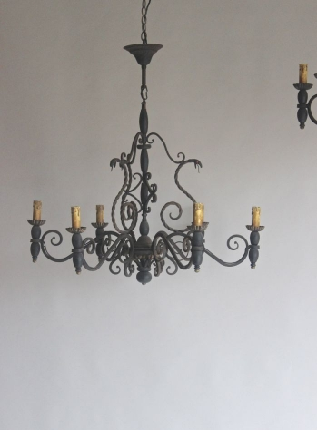 Pair of Unusual Wide Wrought Iron Chandeliers c.1920
