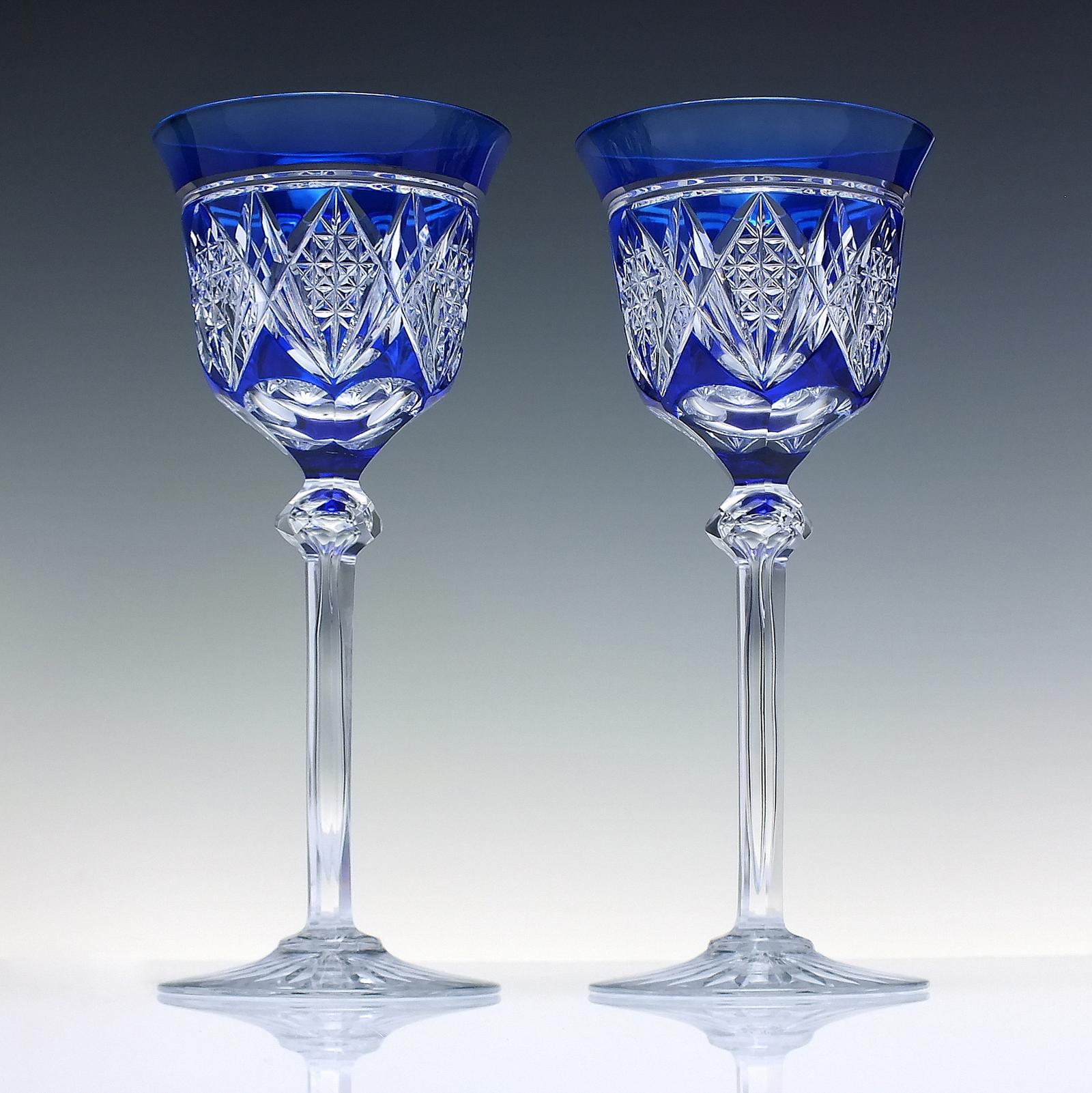 Pair of Val St Lambert Brilliant Cut Crystal Hock Wine Goblets C1940