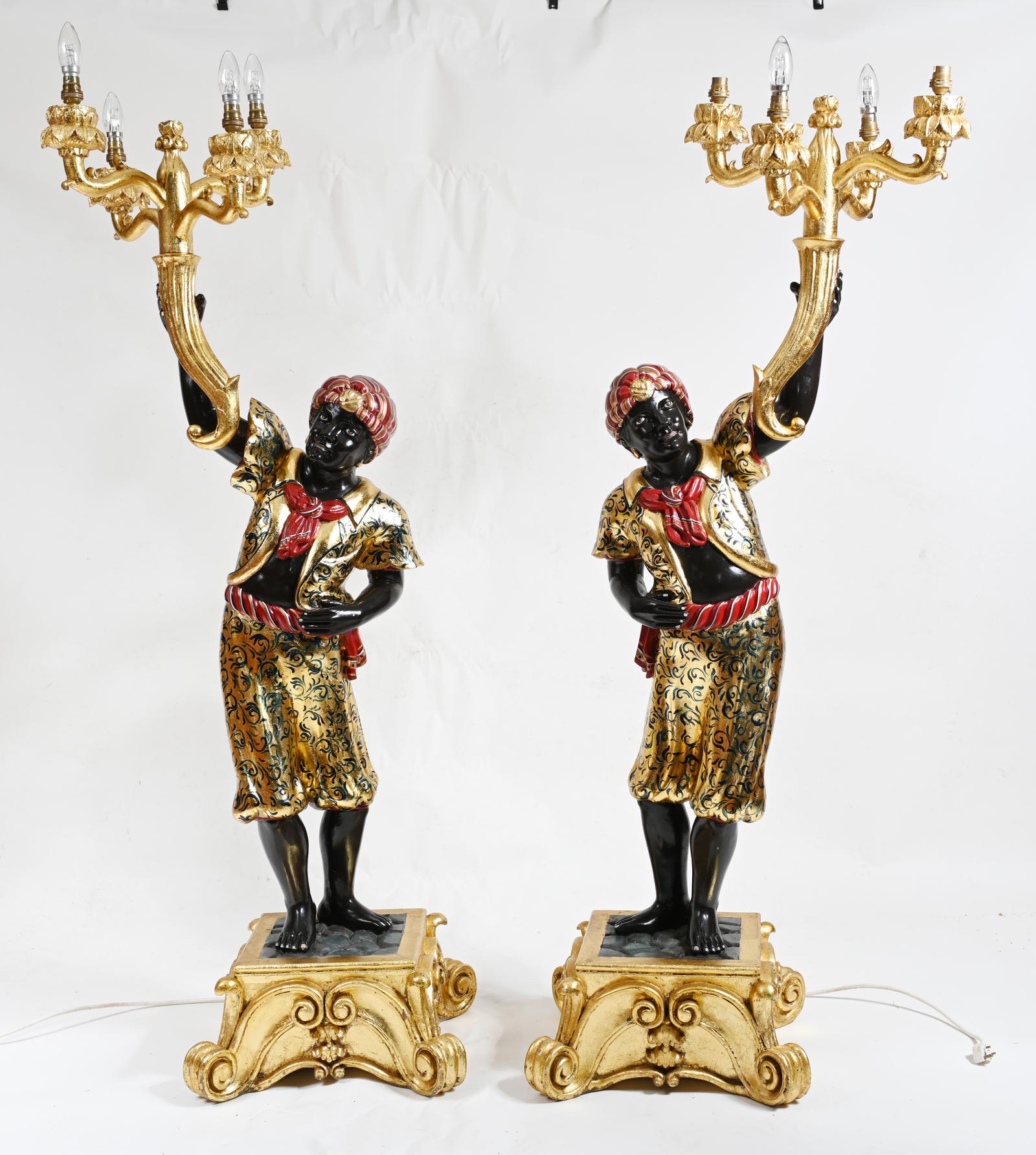 Pair of Venetian Blackamoor Candelabras Carved Statues c.1930