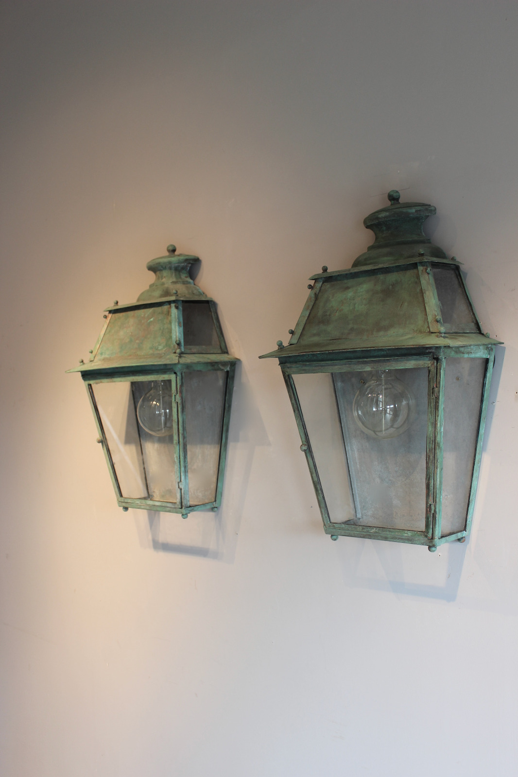 Pair of Verdigris Outside Wall Lanterns c.1930