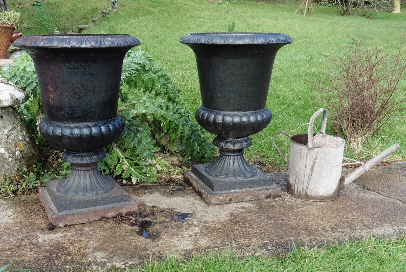 Pair of Very Large Victorian Cast Iron Urns, Garden Planters