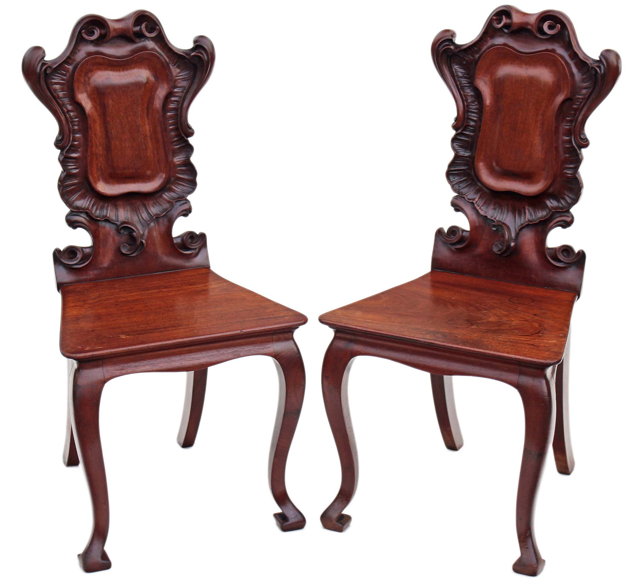 Pair of Victorian 19th Century Carved Mahogany Hall Chairs
