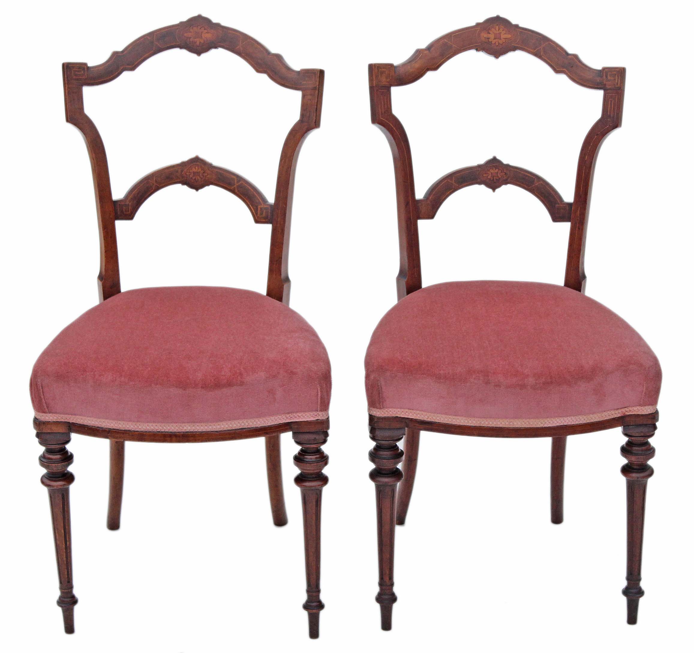 Pair of Victorian 19th Century Inlaid Walnut Dining Chairs / Side Chairs / Bedroom Chairs