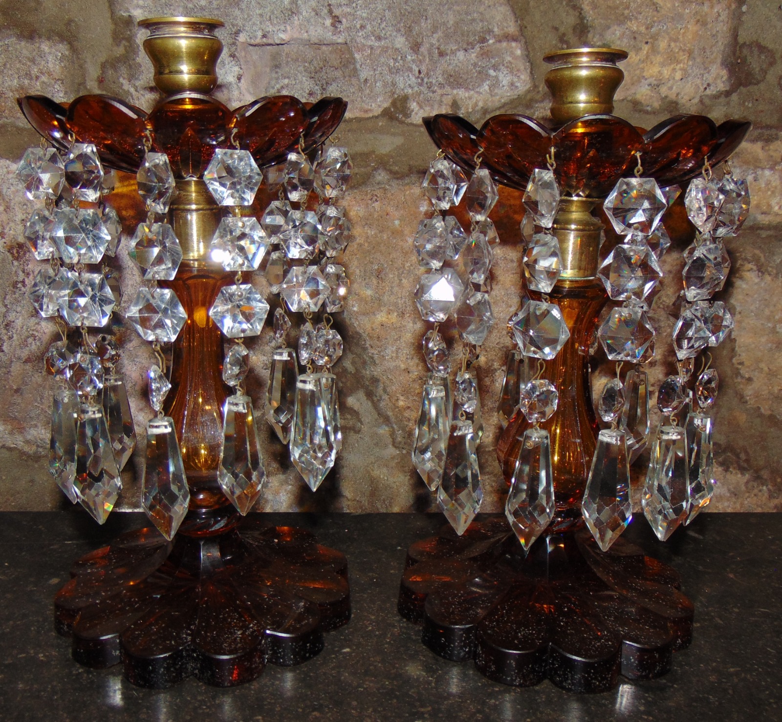 Pair of Victorian Amber Glass Lustres