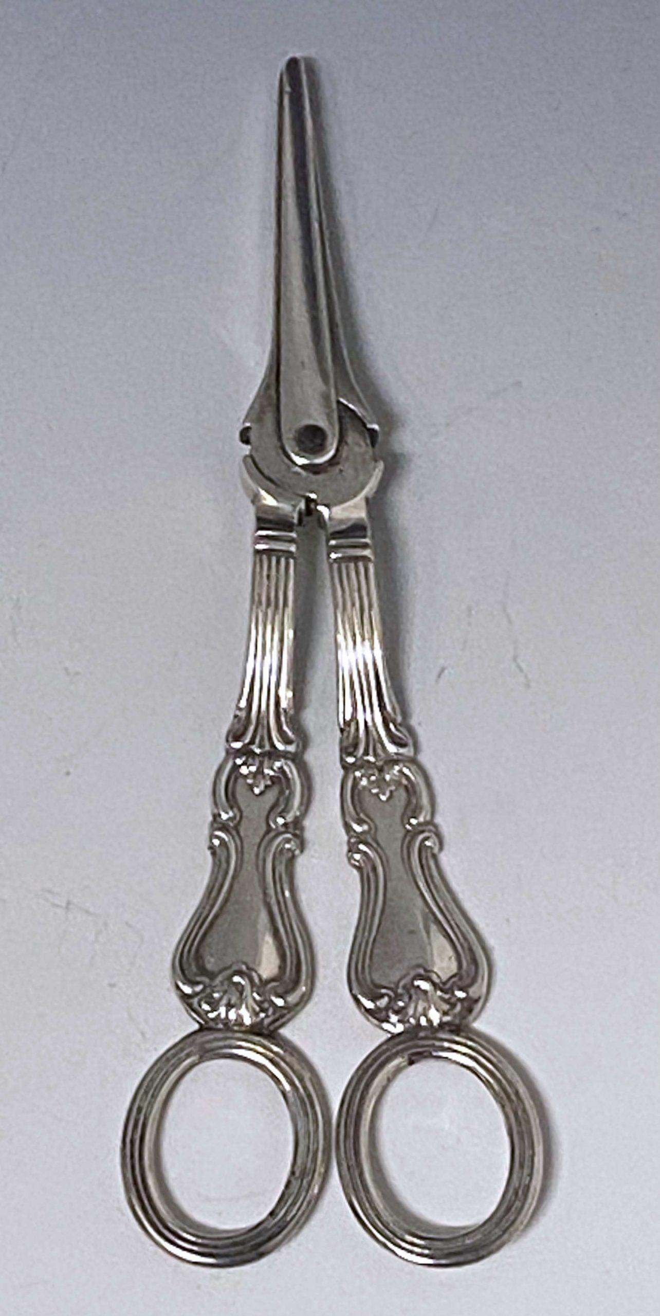 Pair of Victorian Antique Silver Albert Pattern Grape Scissors - Made in 1851