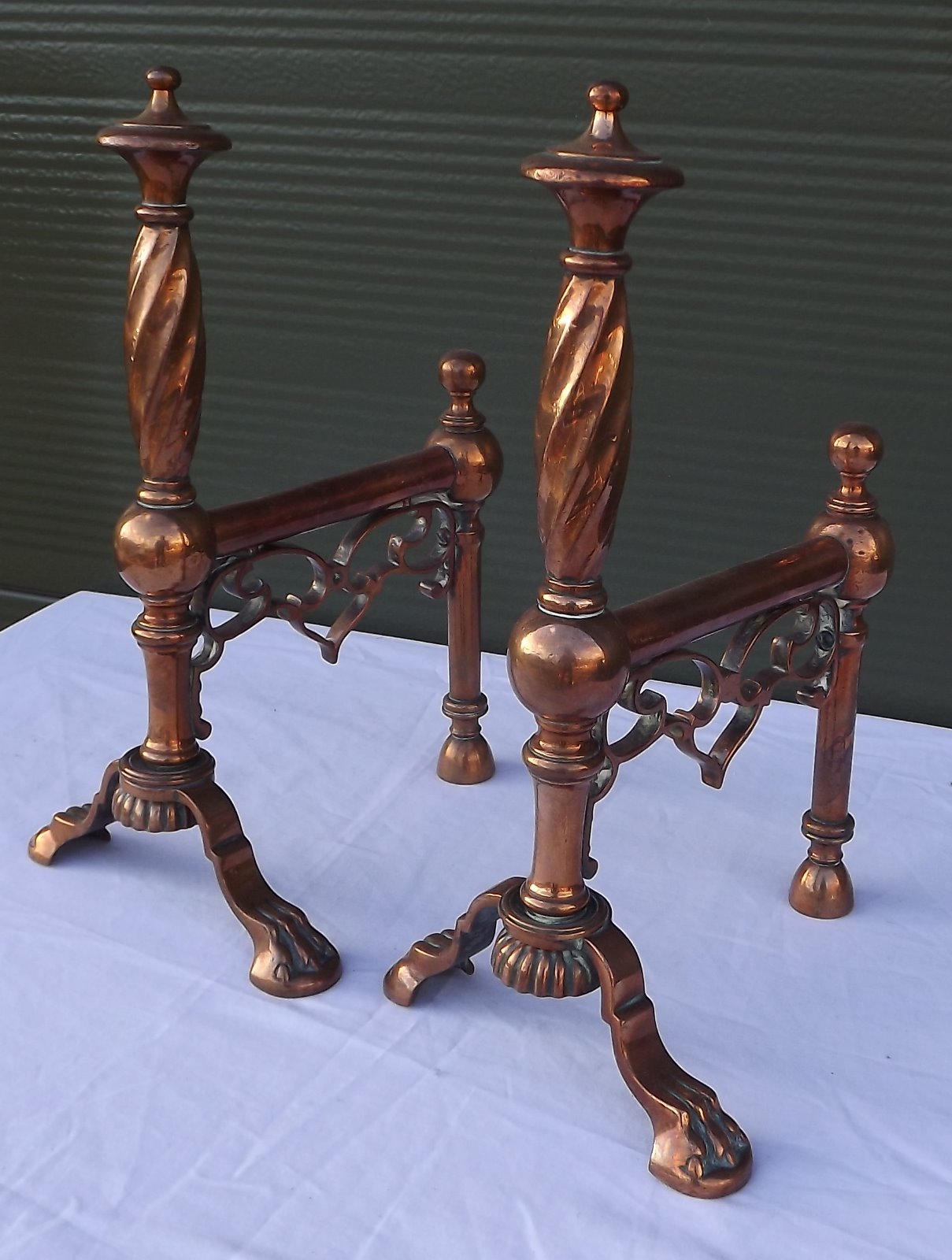 Pair of Victorian Arts & Crafts Copper Fire Dogs