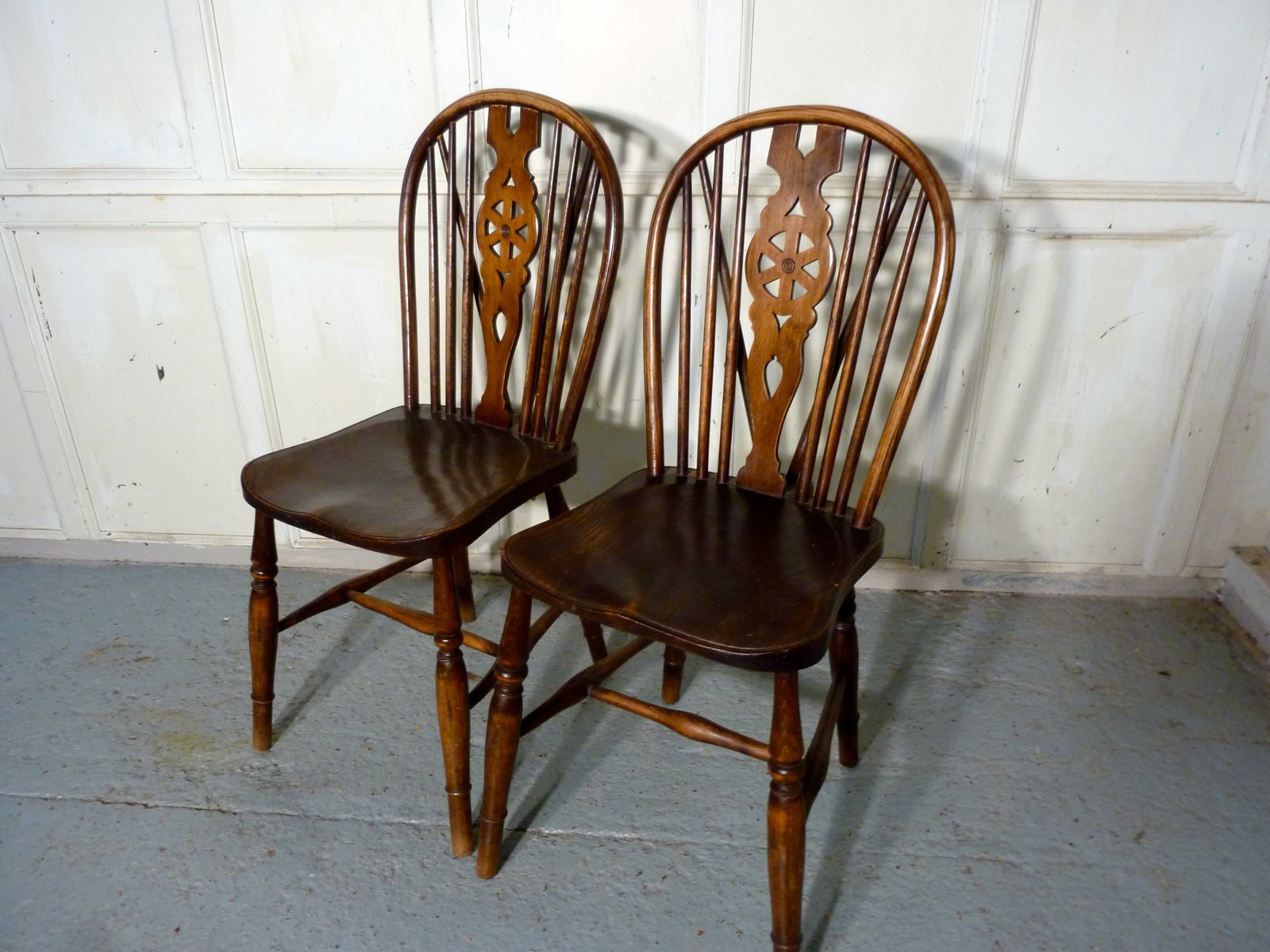 Pair of Victorian Beech & Elm Wheel Back Chairs