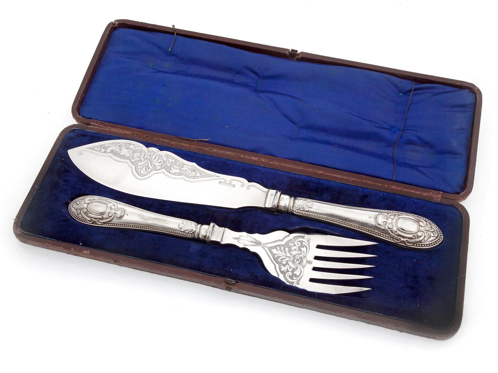 Pair of Victorian Boxed Silver Plated Fish Servers (1 of 6)
