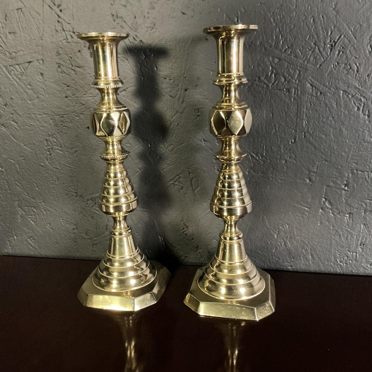 This Pair of Victorian Brass Candlesticks is located in Lancashire, United Kingdom